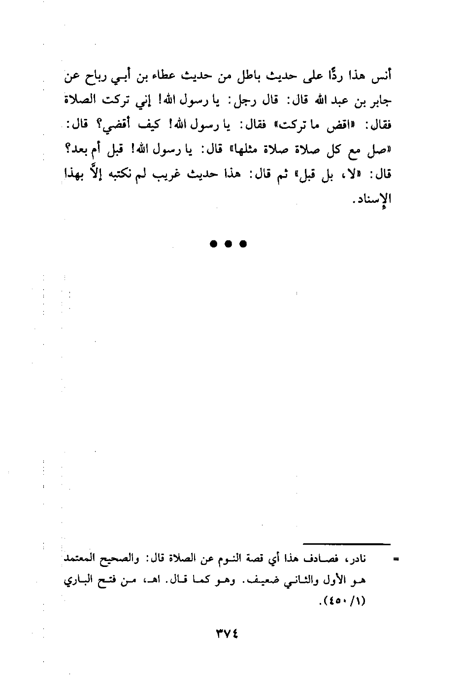 أنس هذا ردًّا على حديث باطل من حديث عطاء بن أبي رباح عن جابر بن عبد الله قال: قال رجل: يا رسول الله! إني تركت الصلاة