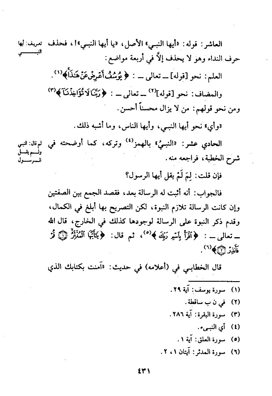 الحادي عشر: "النبيُ" بالهمز (¬4) وتركه، كما أوضحته في شرح الخطبة، فراجعه منه.