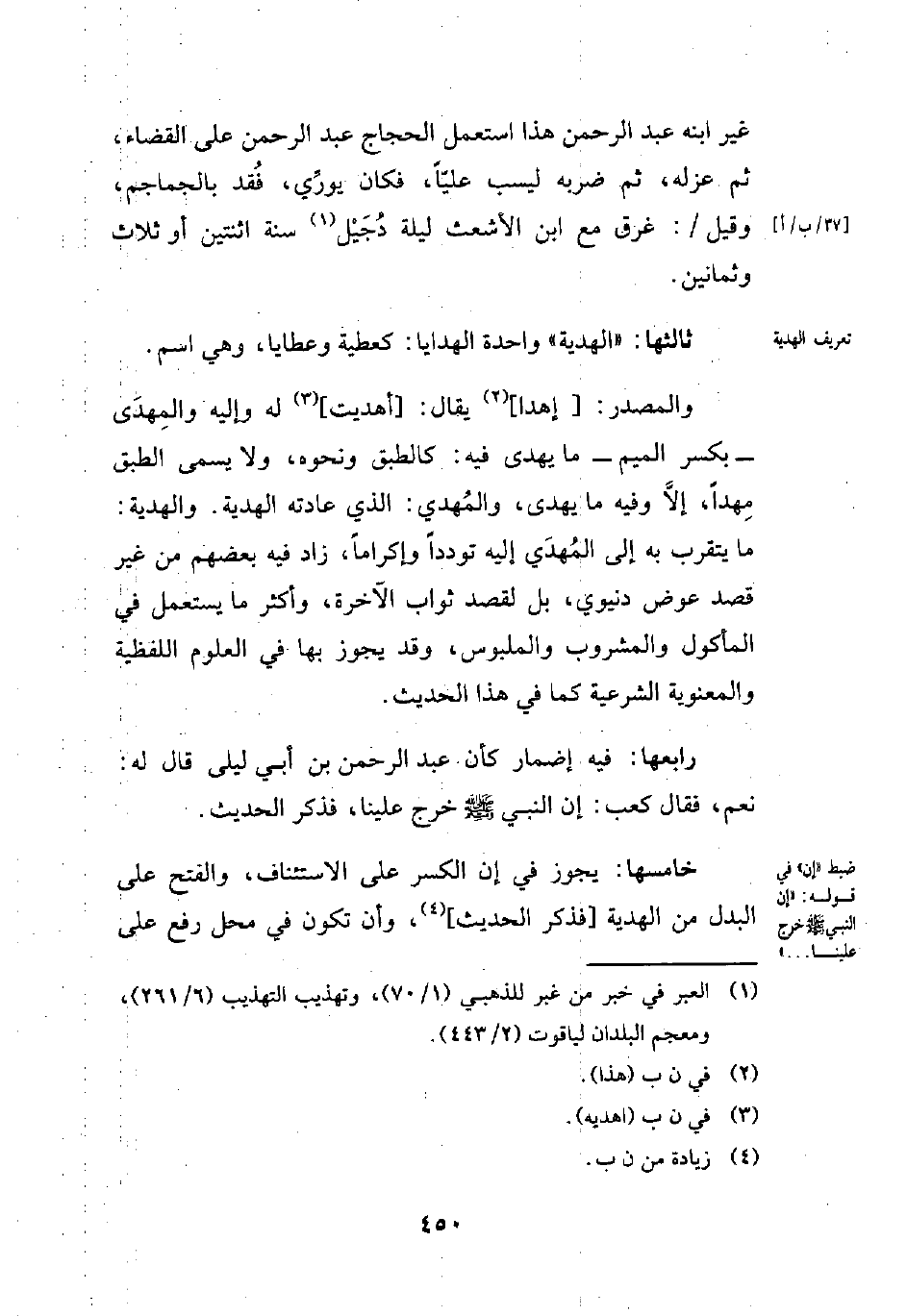 خامسها: يجوز في إن الكسر على الاستئناف، والفتح على البدل من الهدية [فذكر الحديث] (¬4)، وأن تكون في محل رفع على