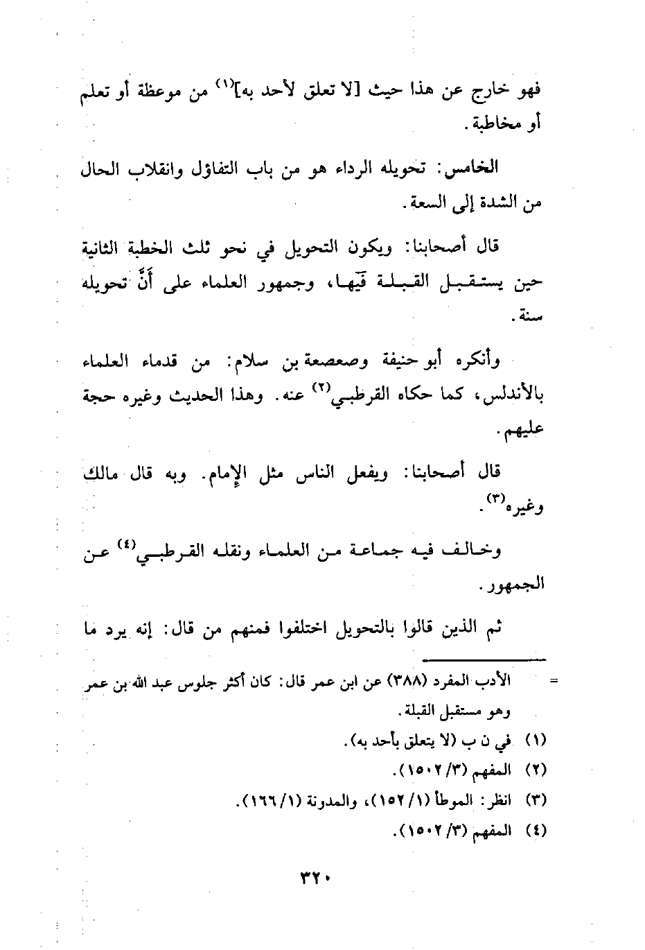 = الأدب المفرد (388) عن ابن عمر قال: كان أكثر جلوس عبد الله بن عمر وهو مستقبل القبلة.