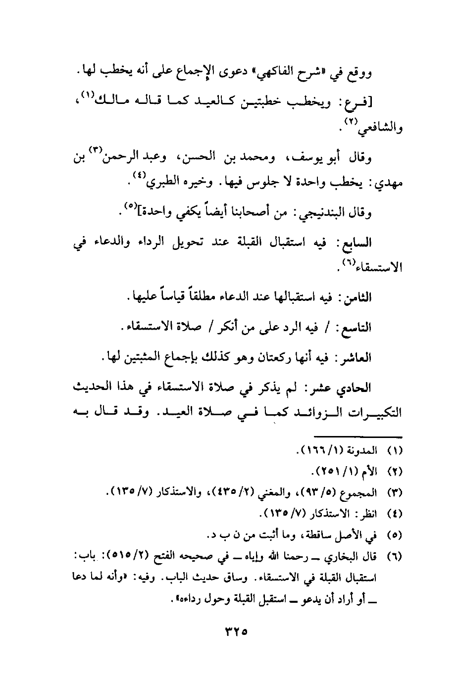 (¬6) قال البخاري -رحمنا الله وإياه- في صحيحه الفتح (2/ 515): باب: استقبال القبلة في الاستسقاء. وساق حدث الباب. وفيه: "وأنه لما دعا -أو أراد أن يدعو- استقبل القبلة وحول رداءه".