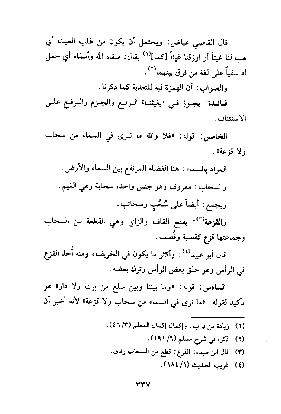 قال القاضي عياض: ويحتمل أن يكون من طلب الغيث أي هب لنا غيثًا أو ارزقنا" غيثًا [كما] (¬1) يقال: سقاه الله وأسقاه أي جعل