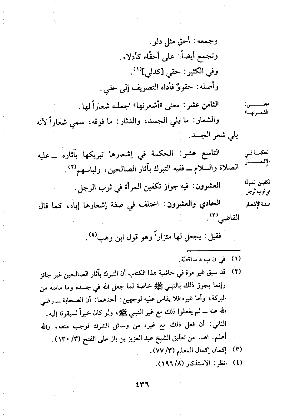 (¬2) قد سبق غير مرة في حاشية هذا الكتاب أن التبرك بآثار الصالحين غير جائز وإنما يجوز ذلك بالنبي - صلى الله عليه وسلم - خاصة لما جعل الله في جسده وما ماسه من البركة، وأما غيره فلا يقاس عليه لوجهين: أحدهما: أن الصحابة - رضي الله عنهم - لم يفعلوا ذلك مع غير النبي - صلى الله عليه وسلم -، ولو كان خيرًا لسبقونا إليه.