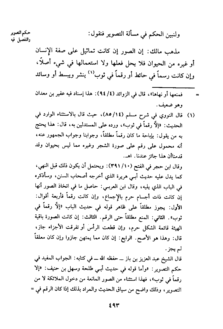 (¬1) قال النووي في شرح مسلم (14/ 85)، حيث قال بالاستثناء الوارد في الحديث: "إلَّا رقماً في ثوب"، ورده على المستدلين به، قال: هذا يحتج به من يقول: بإباحة ما كان رقماً مطلقاً، وجوابنا وجواب الجمهور عنه، أنه محمول على رقم على صورة الشجر وغيره مما ليس بحيوان وقد قدمنا أن هذا جائز عندنا. اهـ.