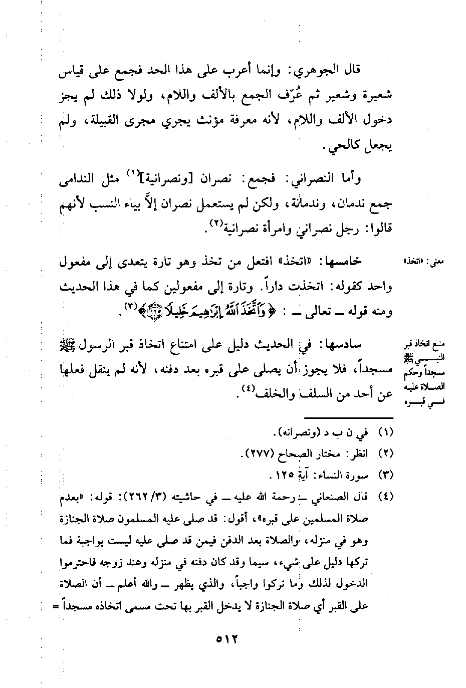 خامسها: "اتخذ" افتعل من تخذ وهو تارة يتعدى إلى مفعول واحد كقوله: اتخذت داراً. وتارة إلى مفعولين كما في هذا الحديث ومنه قوله -تعالى-: {وَاتَّخَذَ اللَّهُ إِبْرَاهِيمَ خَلِيلًا (125)} (¬3).