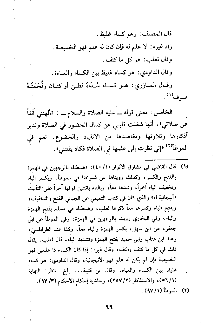 (¬1) قال القاضي في مشارق الأنوار (1/ 40): "ضبطناه بالوجهين في الهمزة بالفتح والكسر، وكذلك رويناها عن شيوخنا في الموطأ، وبكسر الباء وتخفيف الياء آخرًا، وشدها معًا، وبالتاء باثنتين فوقها آخرًا على التأنيث "أنبجاية له" والذي كان في كتاب التميمي عن الجباني الفتح والتخفيف، وبفتح الباء وكسرها معًا ذكرها ثعلب، وضبطناه في مسلم بفتح الهمزة والباء، وفي البخاري رويت بالوجهين في الهمزة، وفي الموطأ عن ابن جعفر، عن ابن سهل، بكسر الهمزة والباء معًا، وكذا عند الطرابلسي، وعند ابن عتاب وابن حميد بفتح الهمزة وتشديد الباء، قال ثعلب: يقال ذلك في كل ما كتف والتف، وقال غيره: إذا كان الكساء ذا علمين فهو الخميصة فإن لم يكن له علم فهو الأنبجانية، وقال الداودي: هو كساء غليظ بين الكساء والعباء، وقال ابن قتيبة ... إلخ. انظر: النهاية (1/ 56)، والاستذكار (2/ 257)، وحاشية إحكام الأحكام (3/ 93).