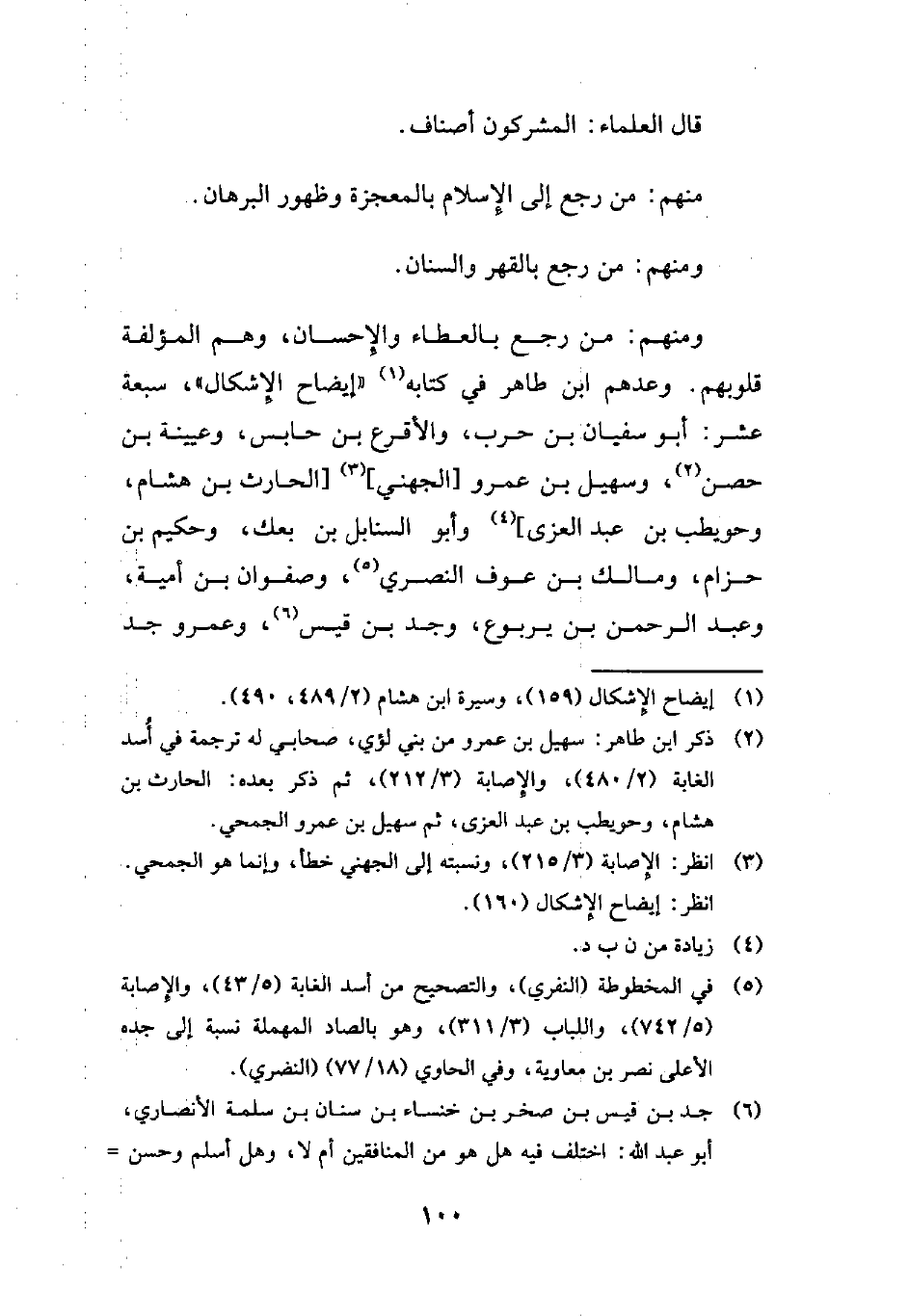 ومنهم: من رجع بالعطاء والإحسان، وهم المؤلفة قلوبهم. وعدهم ابن طاهر في كتابه (¬1) "إيضاح الإِشكال"، سبعة عشر: أبو سفيان بن حرب، والأقرع بن حابس، وعيينة بن حصن (¬2)، وسهيل بن عمرو [الجهني] (¬3) [الحارث بن هشام، وحويطب بن عبد العزى] (¬4) وأبو السنابل بن بعك، وحكيم بن حزام، ومالك بن عوف النصري (¬5)، وصفوان بن أمية، وعبد الرحمن بن يربوع، وجد بن قيس (¬6)، وعمرو جد