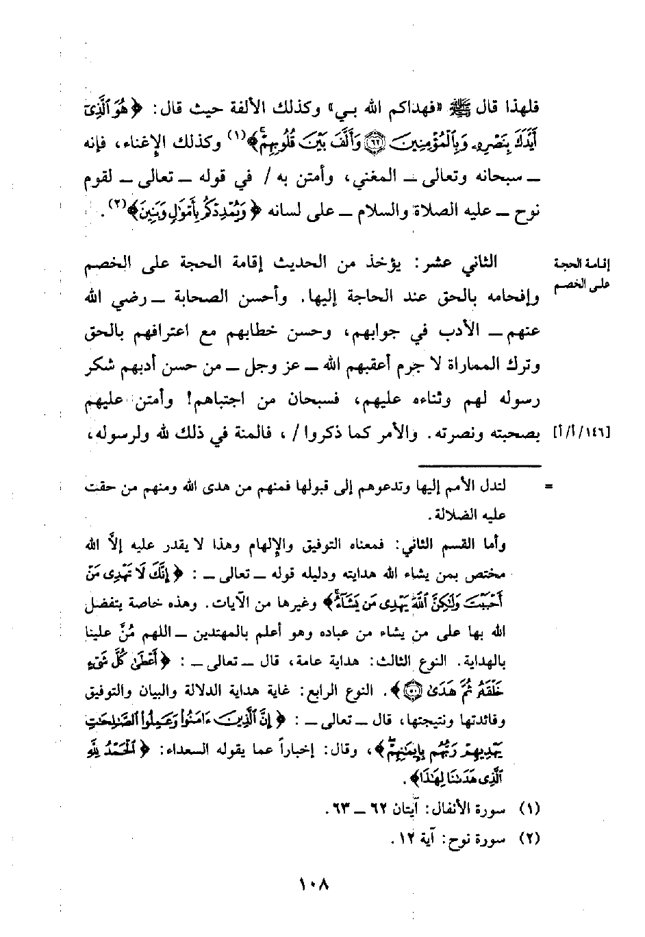فلهذا قال - صلى الله عليه وسلم - "فهداكم الله بي" وكذلك الألفة حيث قال: {هُوَ الَّذِي أَيَّدَكَ بِنَصْرِهِ وَبِالْمُؤْمِنِينَ (62) وَأَلَّفَ بَيْنَ قُلُوبِهِمْ} (¬1) وكذلك الإِغناء، فإنه -سبحانه وتعالى- المغني، وأمتن به في قوله -تعالى- لقوم نوح -عليه الصلاة والسلام- على لسانه {وَيُمْدِدْكُمْ بِأَمْوَالٍ وَبَنِينَ} (¬2).