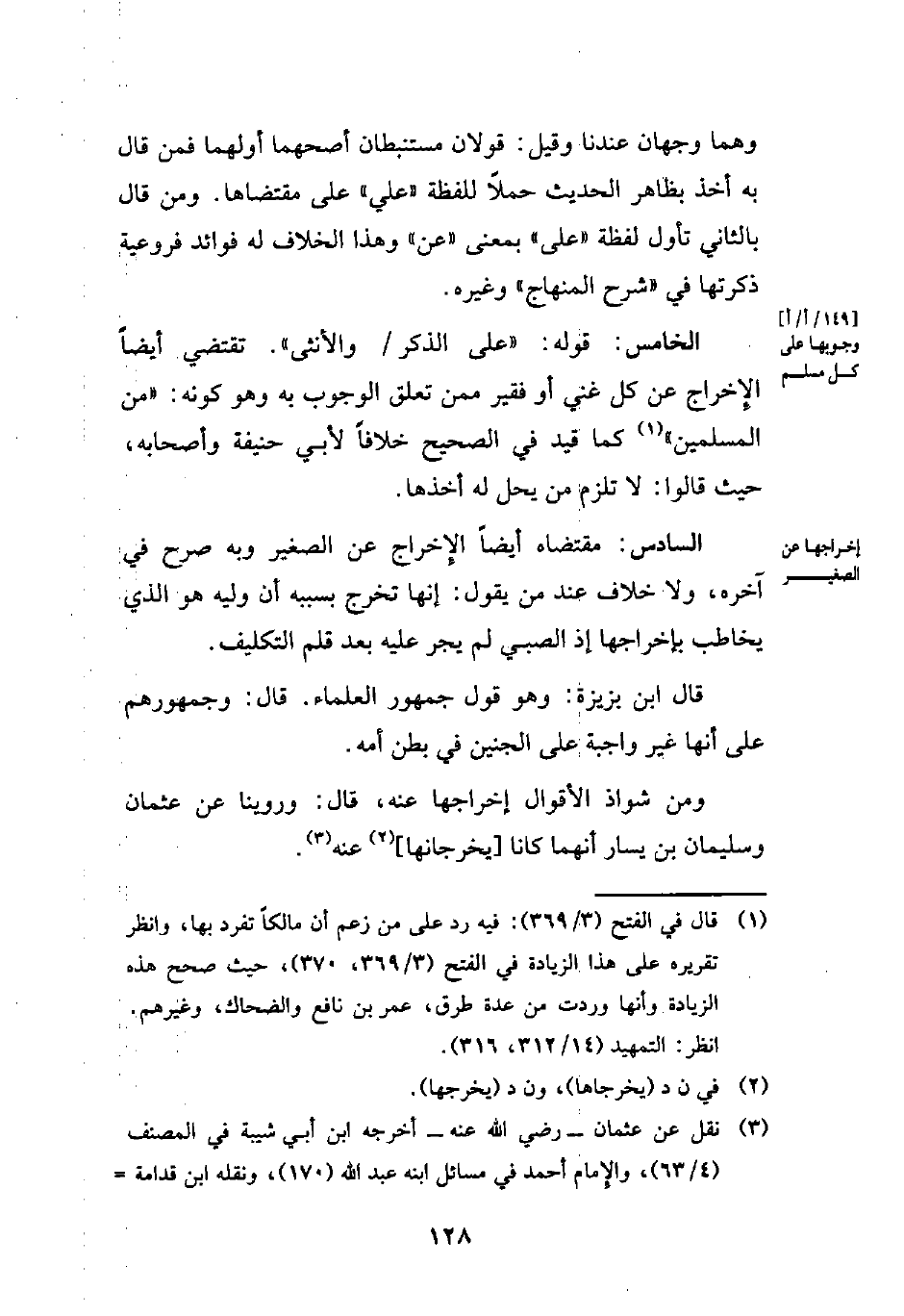 (¬3) نقل عن عثمان -رضي الله عنه- أخرجه ابن أبي شيبة في المصنف (4/ 63)، والإِمام أحمد في مسائل ابنه عبد الله (170)، ونقله ابن قدامة =