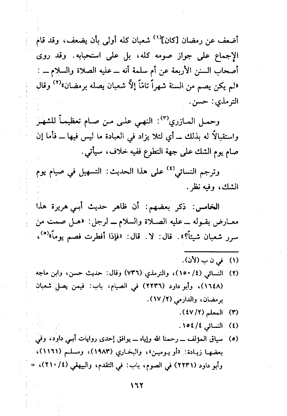 (¬2) النسائي (4/ 150)، والترمذي (736) وقال: حديث حسن، وابن ماجه (1648)، وأبو داود (2236) في الصيام، باب: فيمن يصل شعبان برمضان، والدارمي (2/ 17).
