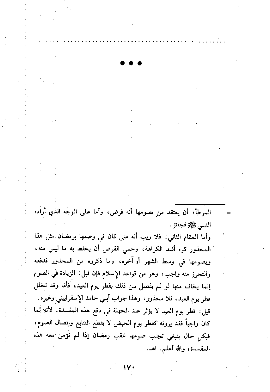وأما المقام الثاني: فلا ريب أنه متى كان في وصلها برمضان مثل هذا المحذور كره أشد الكراهة، وحمي الفرض أن يخلط به ما ليس منه، ويصومها في وسط الشهر أو آخره، وما ذكروه من المحذور فدفعه والتحرز منه واجب، وهو من قواعد الإِسلام فإن قيل: الزيادة في الصوم إنما يخاف منها لو لم يفصل بين ذلك بفطر يوم العيد، فأما وقد تخلل فطر يوم العيد، فلا محذور، وهذا جواب أبي حامد الإِسفراييني وغيره.