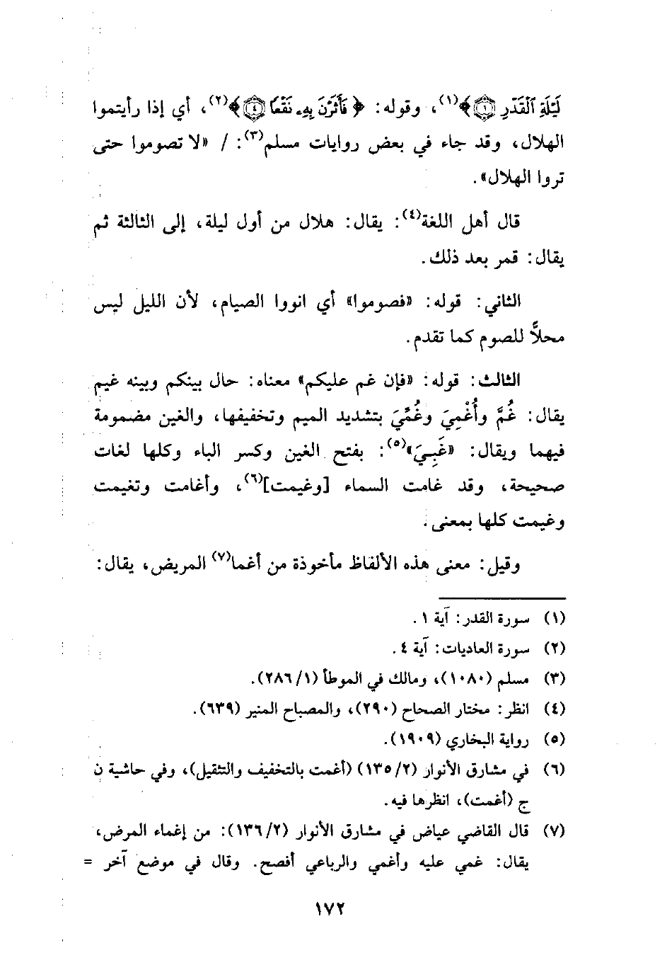 لَيْلَةِ الْقَدْرِ (1)} (¬1)، وقوله: {فَأَثَرْنَ بِهِ نَقْعًا (4)} (¬2)، أي إذا رأيتموا الهلال، وقد جاء في بعض روايات مسلم (¬3): "لا تصوموا حتى تروا الهلال".