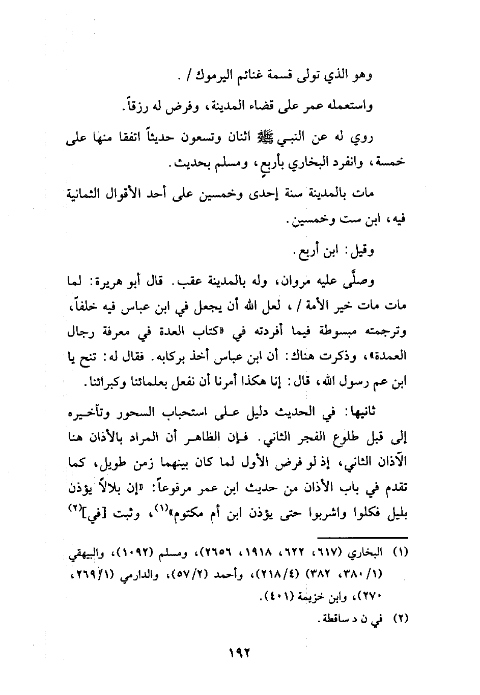 (¬1) البخاري (617، 622، 1918، 2656)، ومسلم (1092)، والبيهقي (1/ 380، 382) (4/ 218)، وأحمد (2/ 57)، والدارمي (1/ 269، 270)، وابن خزيمة (401).