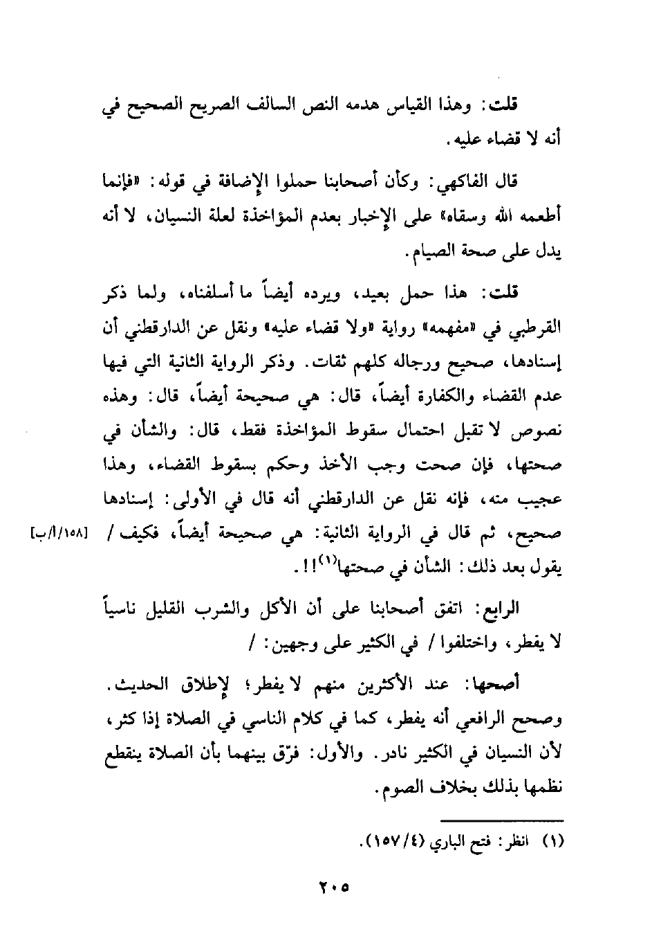 قلت: هذا حمل بعيد، ويرده أيضاً ما أسلفناه، ولما ذكر القرطبي في "مفهمه" رواية "ولا قضاء عليه" ونقل عن الدارقطني أن إسنادها، صحيح ورجاله كلهم ثقات. وذكر الرواية الثانية التي فيها عدم القضاء والكفارة أيضاً، قال: هي صحيحة أيضاً، قال: وهذه نصوص لا تقبل احتمال سقوط المؤاخذة فقط، قال: والشأن في صحتها، فان صحت وجب الأخذ وحكم بسقوط القضاء، وهذا عجيب منه، فإنه نقل عن الدارقطني أنه قال في الأولى: إسنادها صحيح، ثم قال في الرواية الثانية: هي صحيحة أيضاً، فكيف يقول بعد ذلك: الشأن في صحتها (¬1)!!.