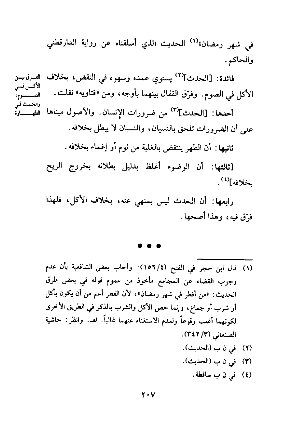 رابعها: أن الحدث ليس بمنهي عنه، بخلاف الأكل، فلهذا فرّق فيه، وهذا أصحها.