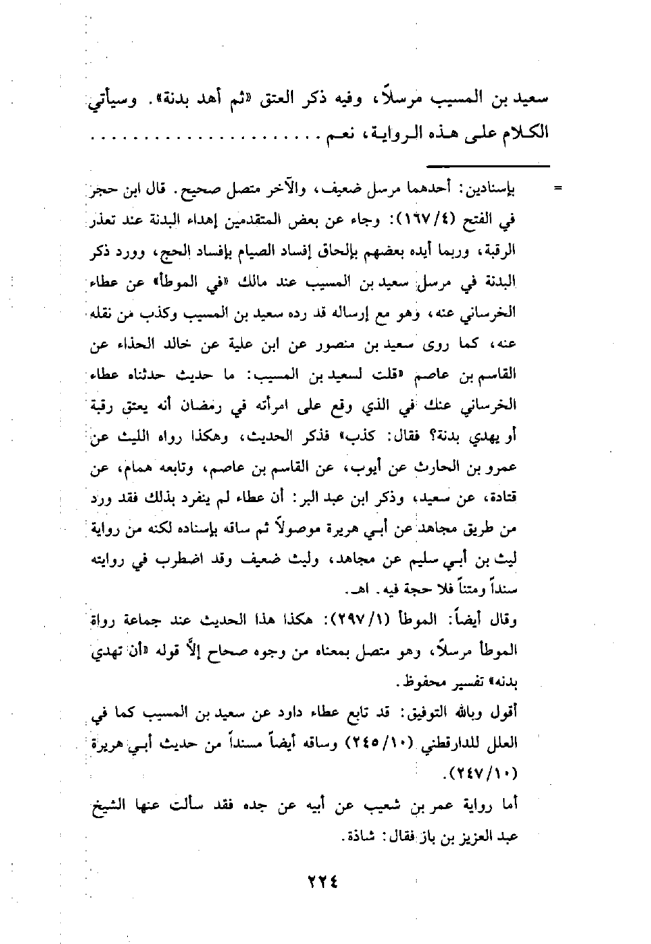 وقال أيضاً: الموطأ (1/ 297): هكذا هذا الحديث عند جماعة رواة الموطأ مرسلاً، وهو متصل بمعناه من وجوه صحاح إلَّا قوله "أن تهدي بدنه" تفسير محفوظ.