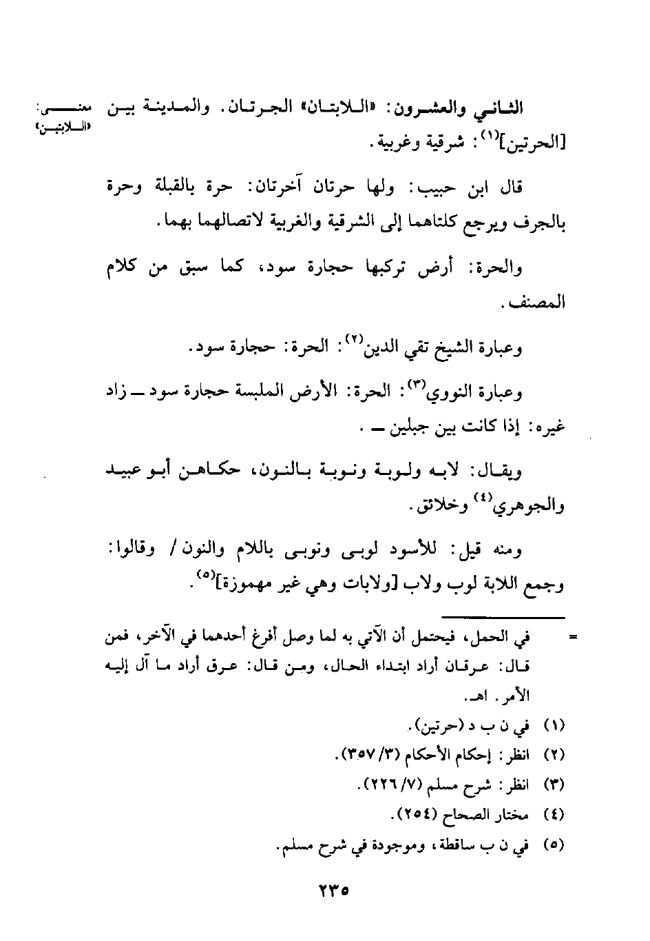 الثاني والعشرون: "اللابتان" الحرتان. والمدينة بين [الحرتين] (¬1): شرقية وغربية.