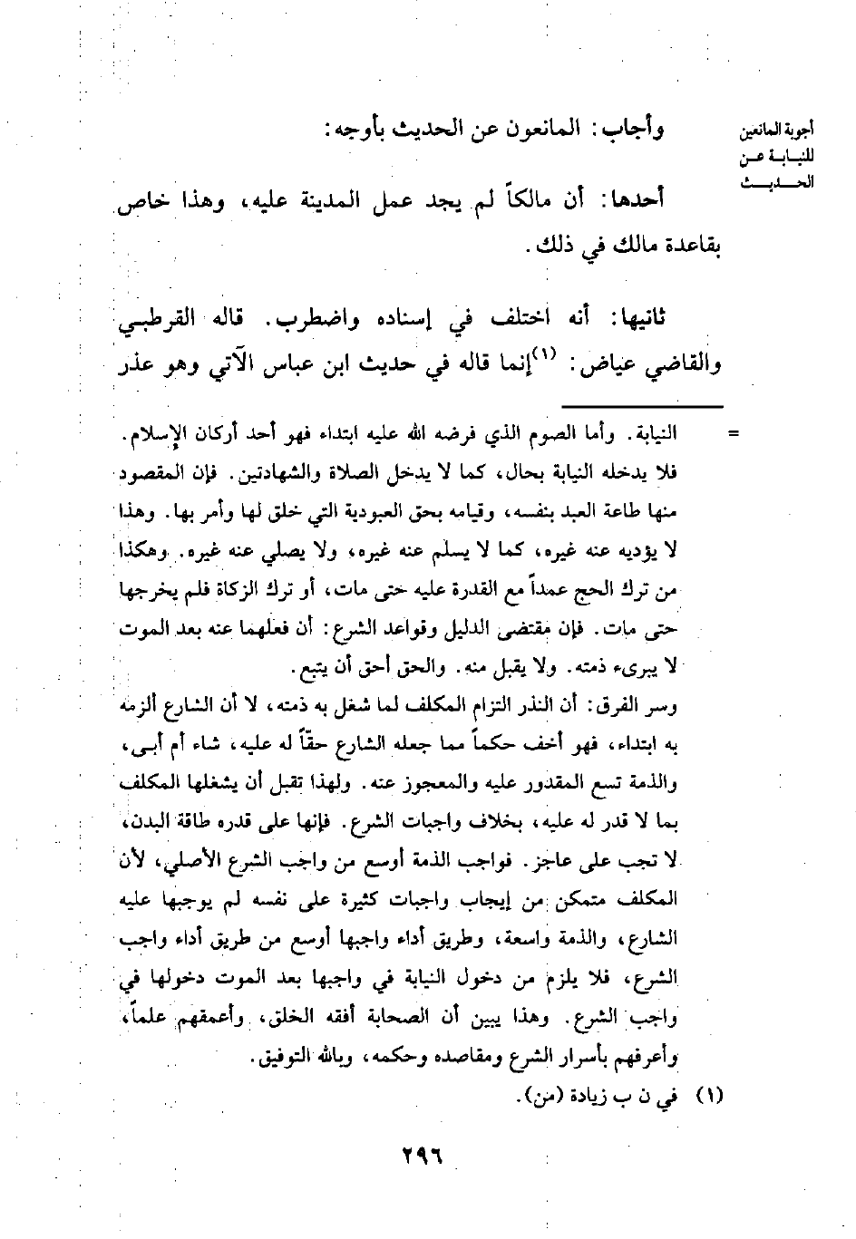 وأجاب: المانعون عن الحديث بأوجه: