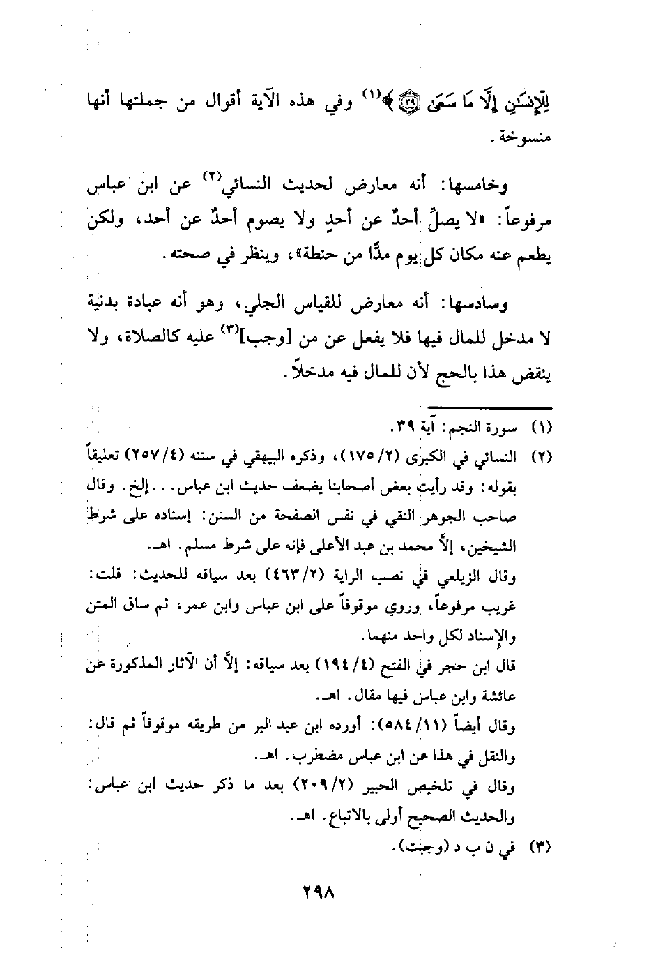 لِلْإِنْسَانِ إِلَّا مَا سَعَى (39)} (¬1) وفي هذه الآية أقوال من جملتها أنها منسوخة.