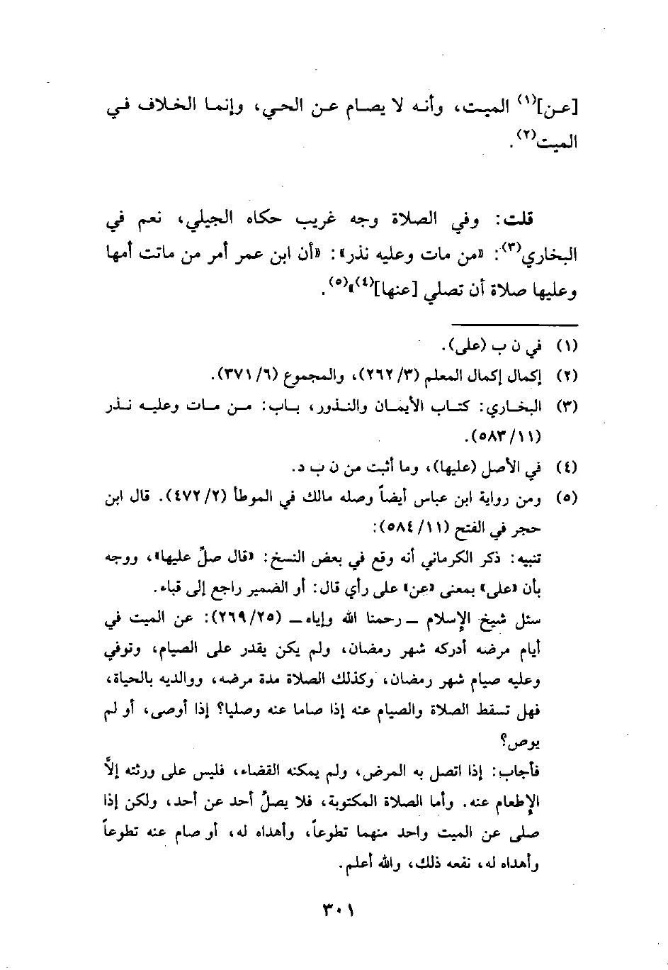 (¬3) البخاري: كتاب الأيمان والنذور، باب: من مات وعليه نذر (11/ 583).