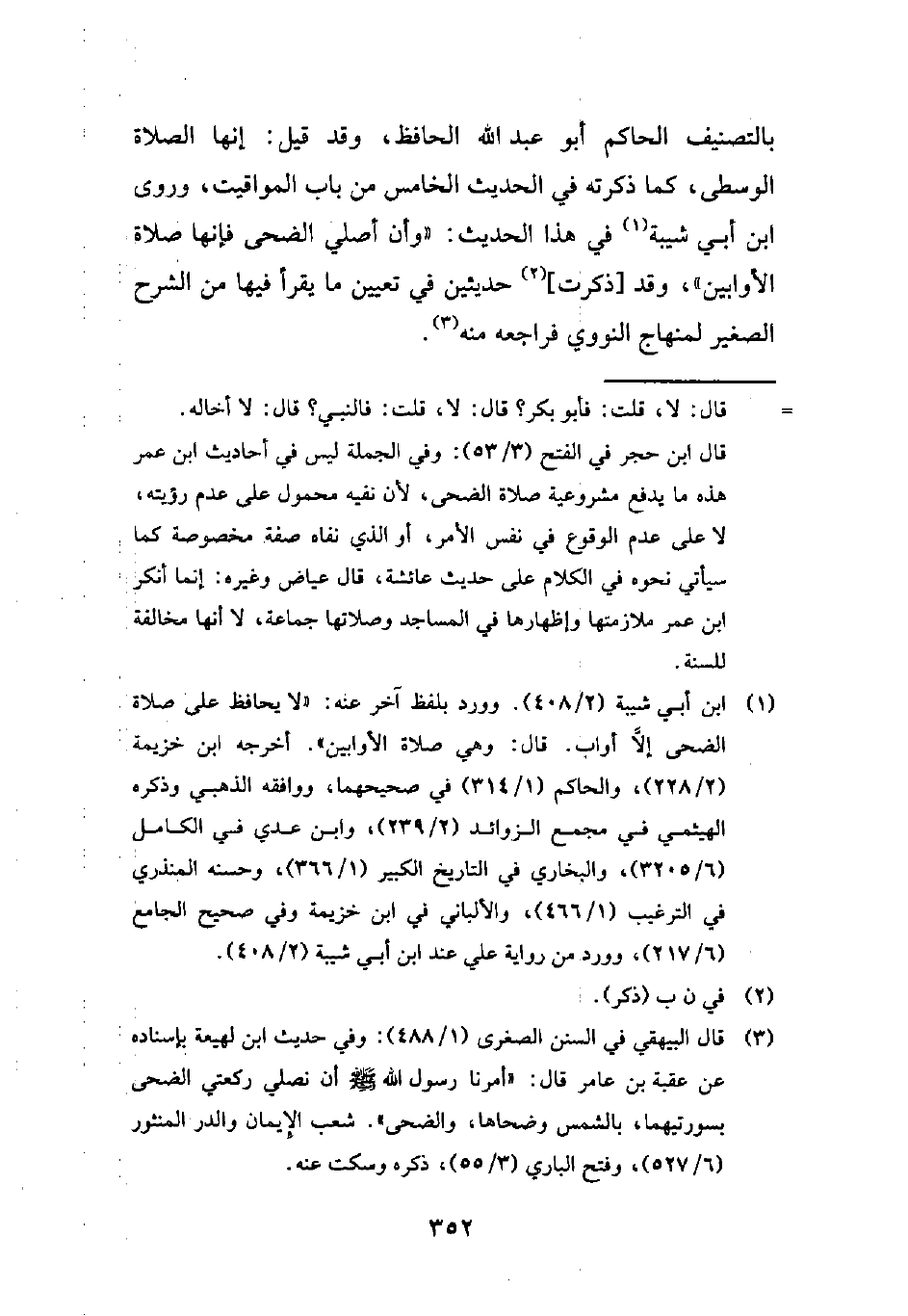 (¬1) ابن أبي شيبة (2/ 408). وورد بلفظ آخر عنه: "لا يحافظ على صلاة الضحى إلاَّ أواب. قال: وهي صلاة الأوابين". أخرجه ابن خزيمة (2/ 228)، والحاكم (1/ 314) في صحيحهما، ووافقه الذهبي وذكره الهيثمي في مجمع الزوائد (2/ 239)، وابن عدي في الكامل (6/ 3205)، والبخاري في التاريخ الكبير (1/ 366)، وحسنه المنذري في الترغيب (1/ 466)، والألباني في ابن خزيمة وفي صحيح الجامع (6/ 217)، وورد من رواية علي عند ابن أبي شيبة (2/ 408).