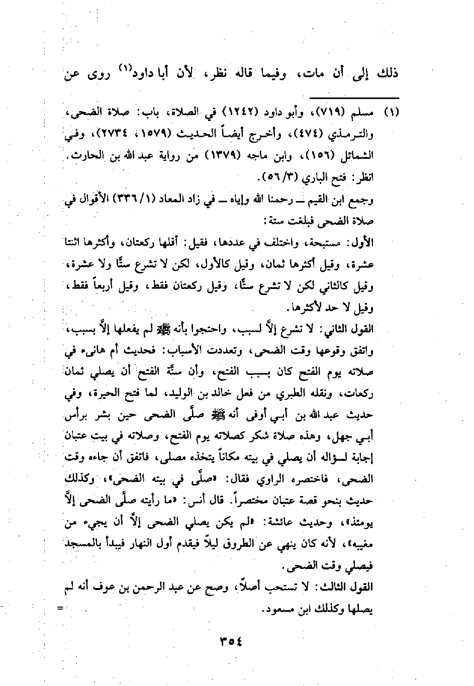 وجمع ابن القيم -رحمنا الله وإياه- في زاد المعاد (1/ 336) الأقوال في صلاة الضحى فبلغت ستة: