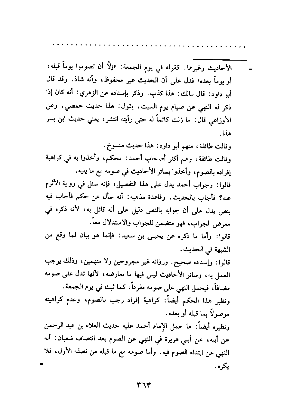 وقالت طائفة، وهم أكثر أصحاب أحمد: محكم، وأخذوا به في كراهية إفراده بالصوم، وأخذوا بسائر الأحاديث في صومه مع ما يليه.
