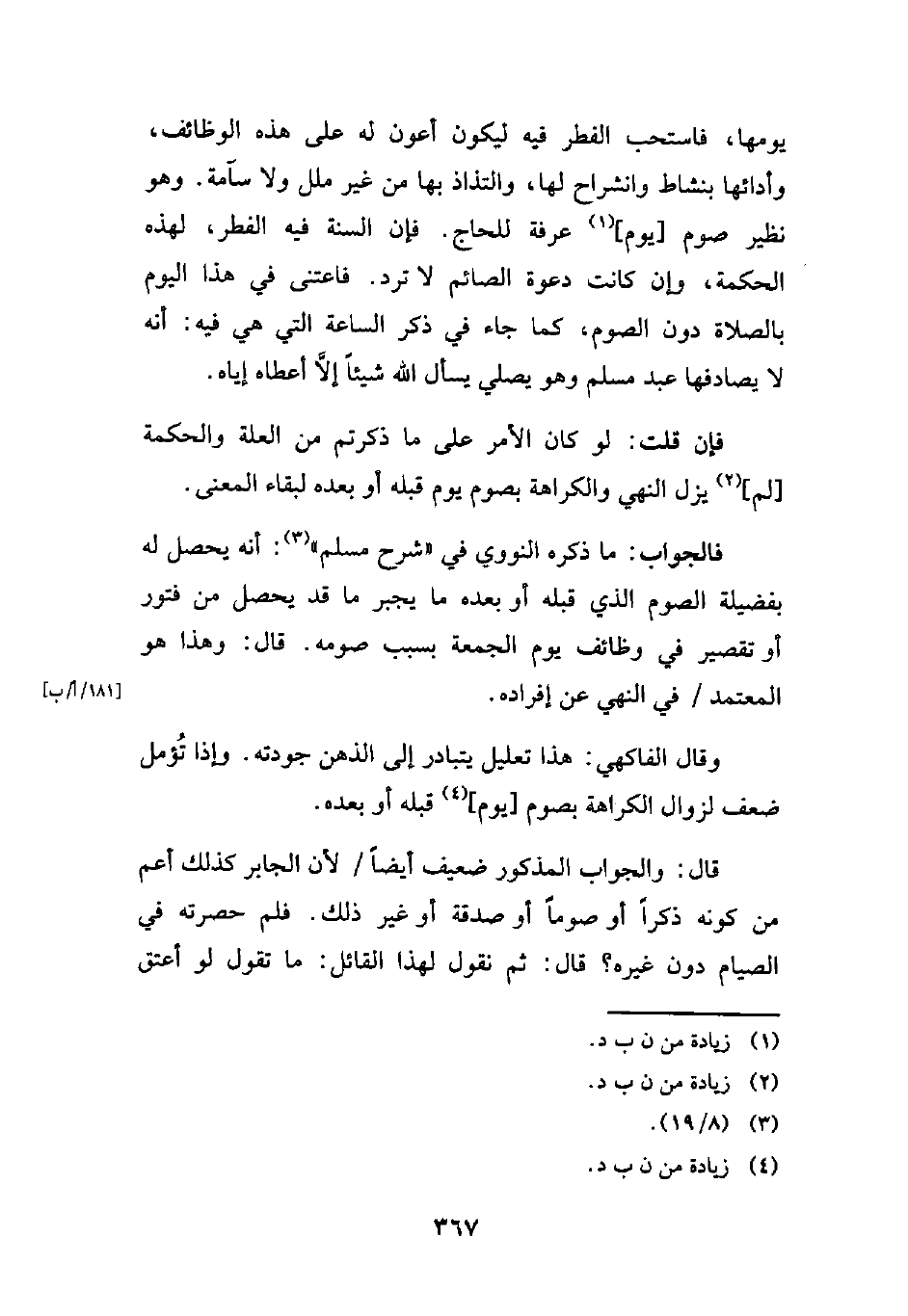 قال: والجواب المذكور ضعيف أيضاً لأن الجابر كذلك أعم من كونه ذكراً أو صوماً أو صدقة أو غير ذلك. فلم حصرته في الصيام دون غيره؟ قال: ثم نقول لهذا القائل: ما تقول لو أعتق
