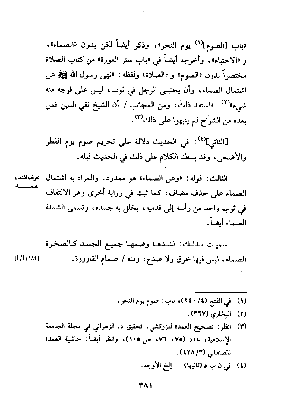 (¬3) انظر: تصحيح العمدة للزركشي، تحقيق د. الزهراني في مجلة الجامعة الإِسلامية، عدد (75، 76، ص 105)، وانظر أيضاً: حاشية العمدة للصنعاني (3/ 428).