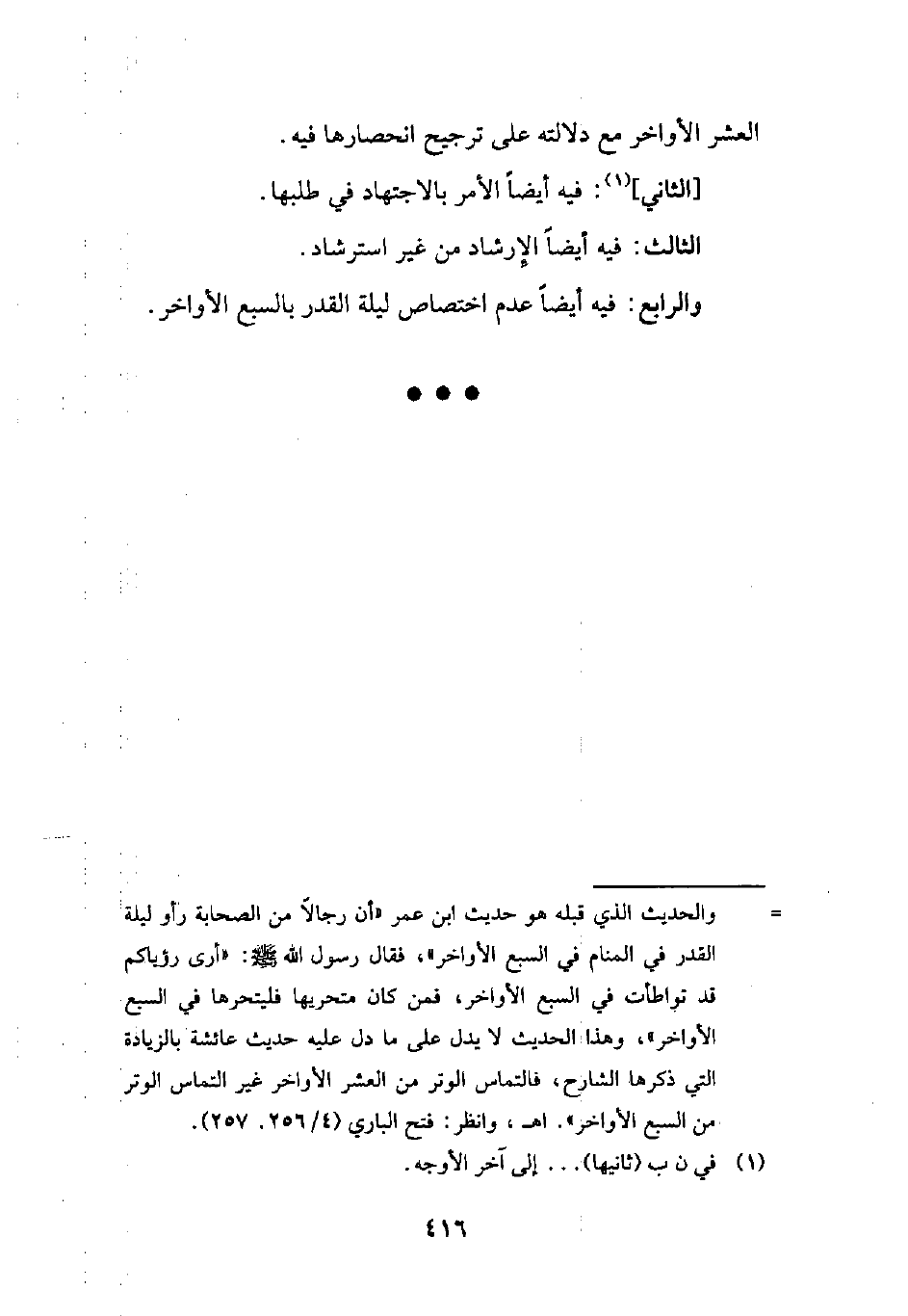 العشر الأواخر مع دلالته على ترجيح انحصارها فيه.