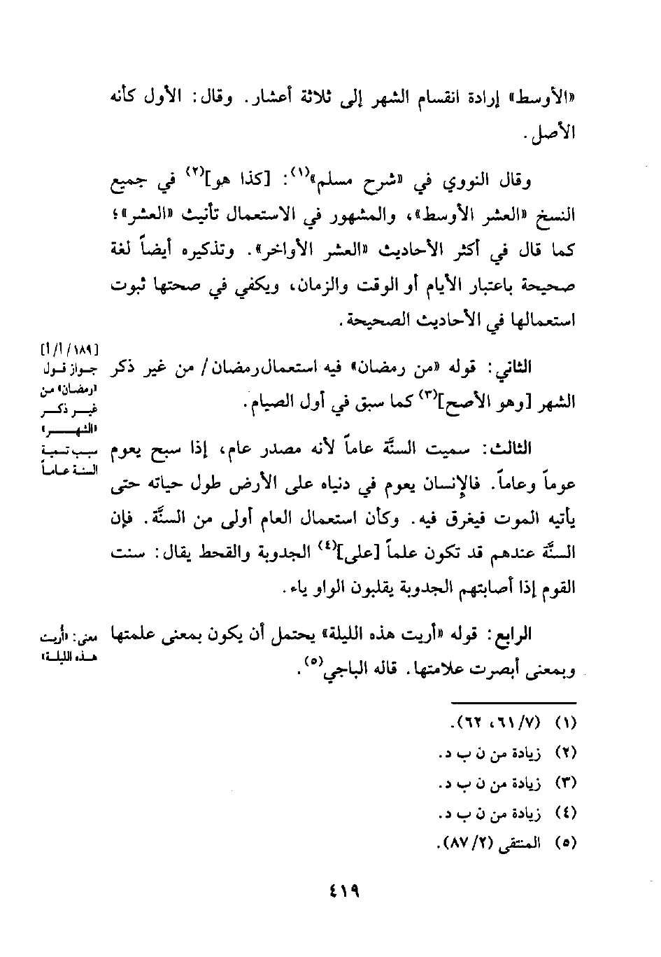 وقال النووي في "شرح مسلم" (¬1): [كذا هو] (¬2) في جميع النسخ "العشر الأوسط"، والمشهور في الاستعمال تأنيث "العشر"؛ كما قال في أكثر الأحاديث "العشر الأواخر". وتذكيره أيضاً لغة صحيحة باعتبار الأيام أو الوقت والزمان، ويكفي في صحتها ثبوت استعمالها في الأحاديث الصحيحة.