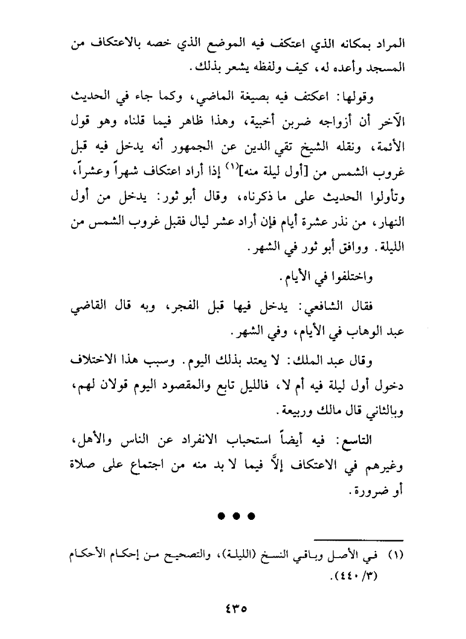(1) في الأصل وباقي النسخ (الليلة)، والصحيح من إحكام الأحكام (3/ 440).
