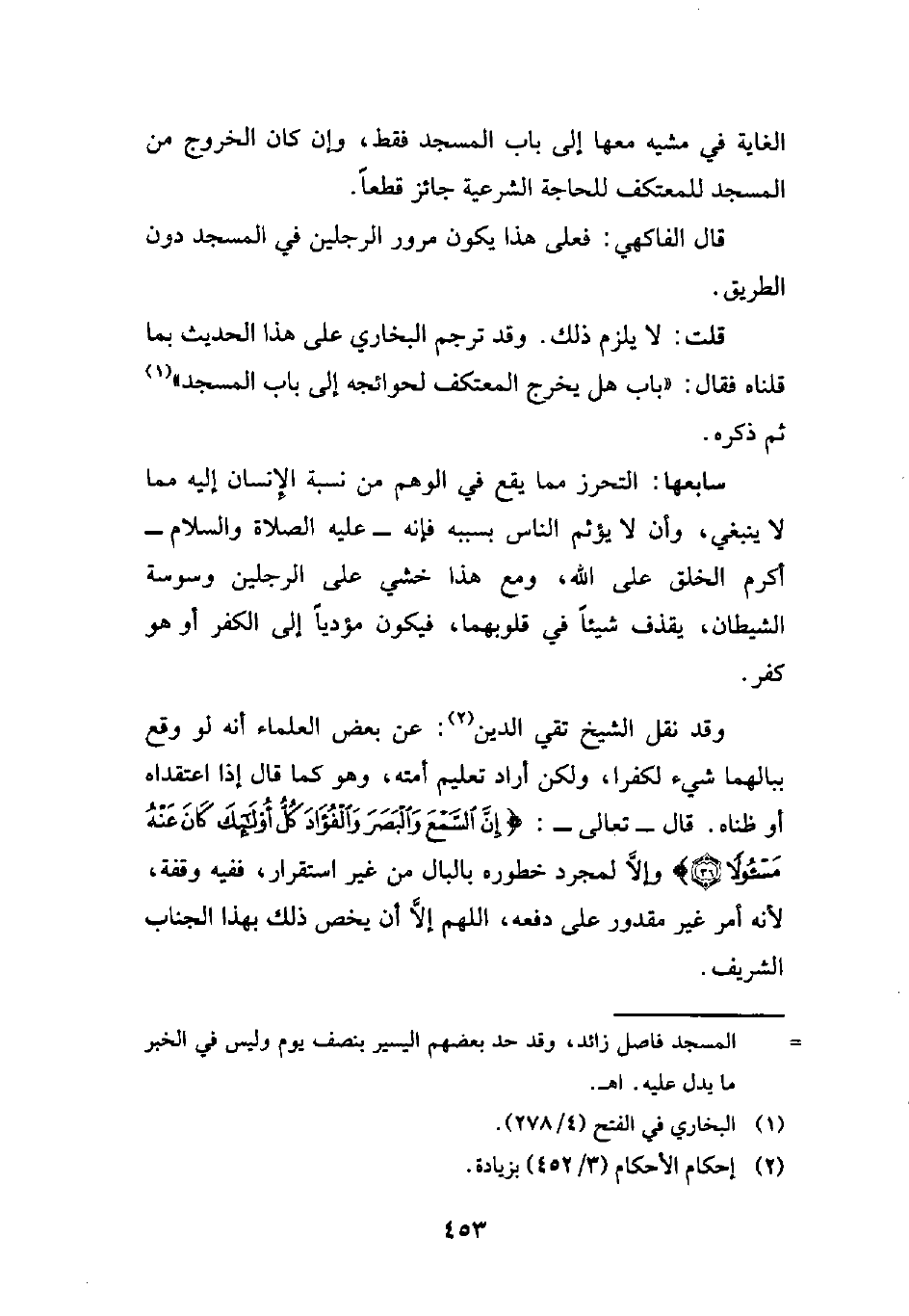 قال الفاكهي: فعلى هذا يكون مرور الرجلين في المسجد دون الطريق.