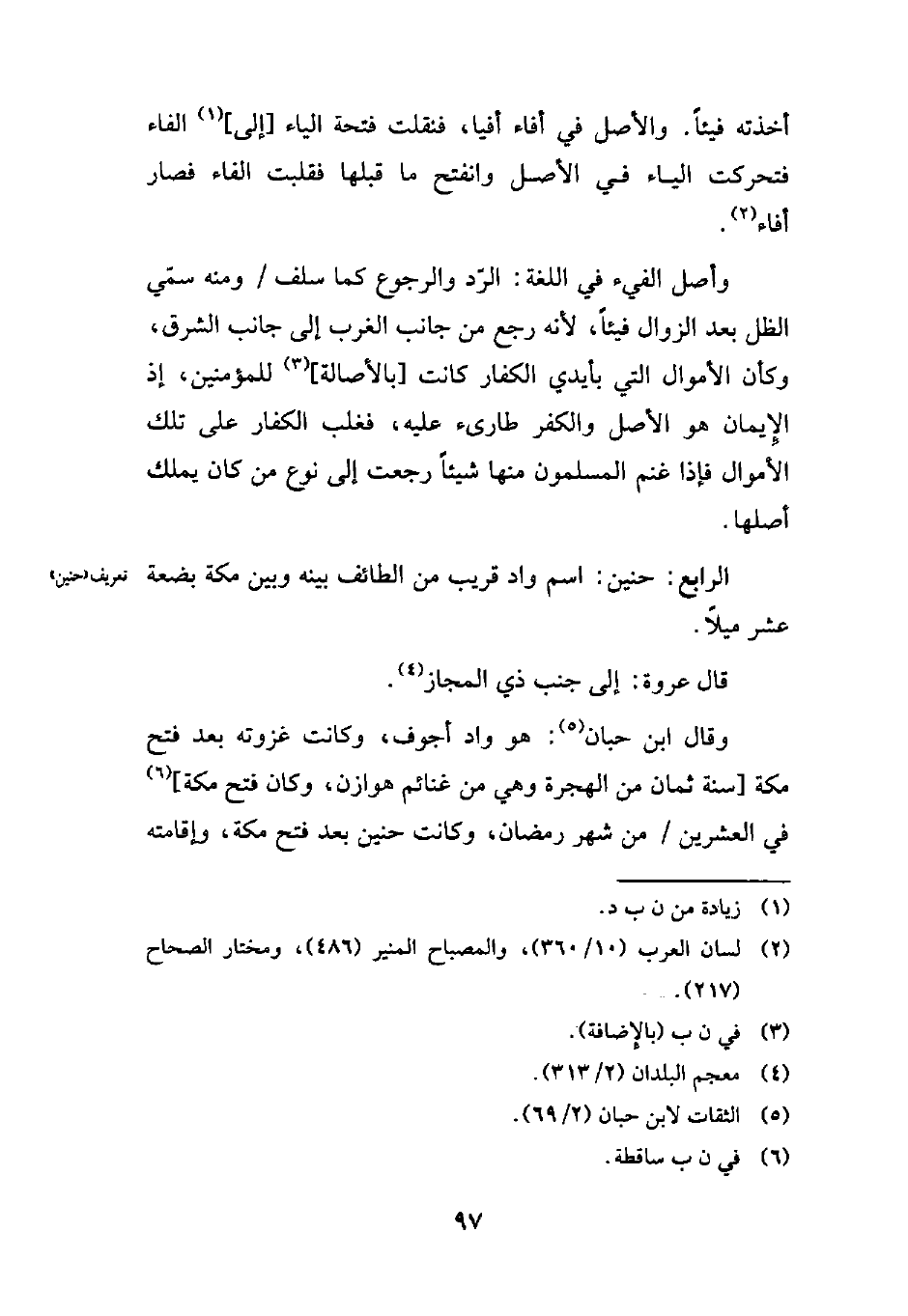 الرابع: حنين: اسم واد قريب من الطائف بينه وبين مكة بضعة عشر ميلاً.