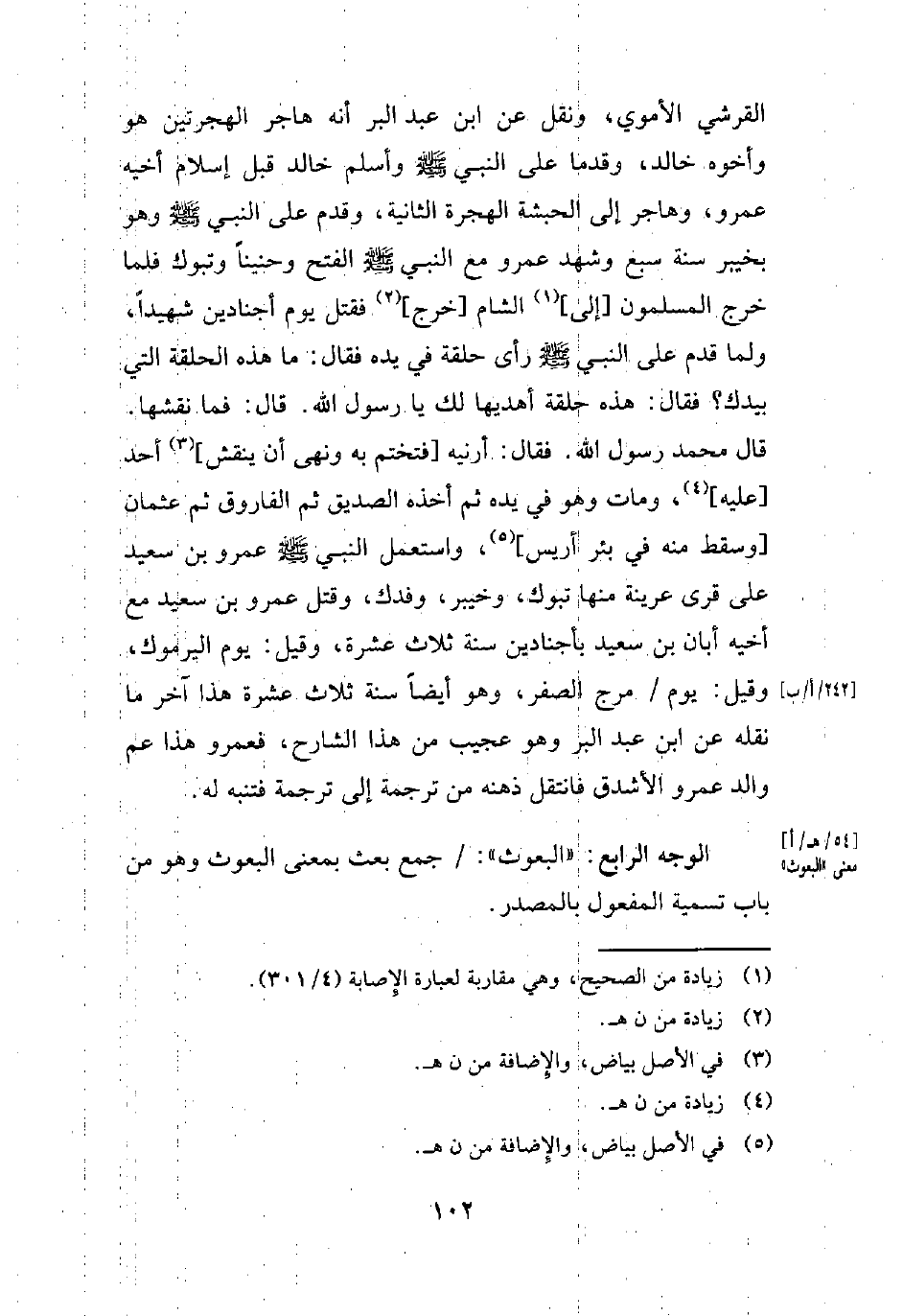 الوجه الرابع: "البعوث": جمع بعث بمعنى البعوث وهو من باب تسمية المفعول بالمصدر.