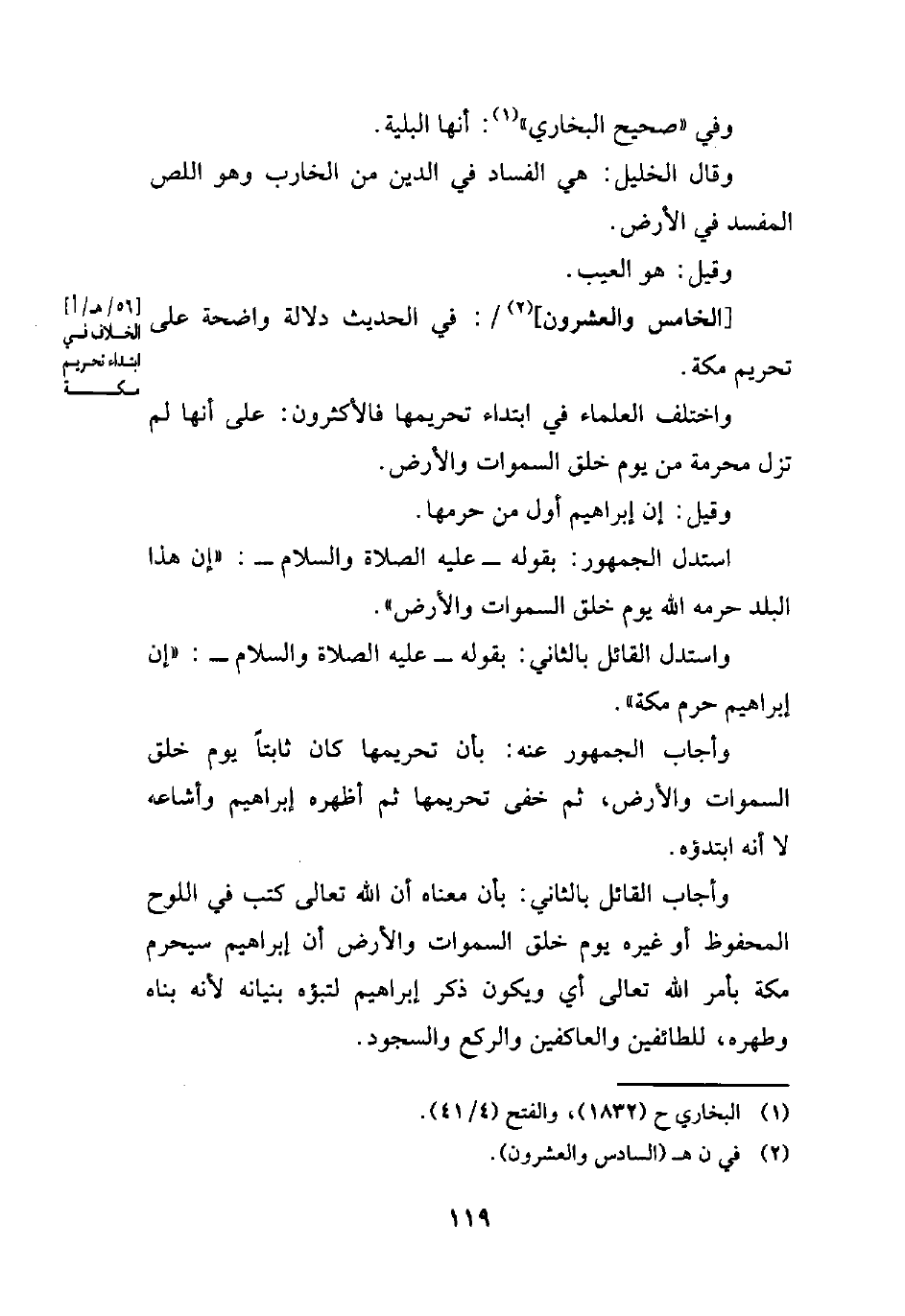 واستدل القائل بالثاني: بقوله -عليه الصلاة والسلام-: "إن إبراهيم حرم مكة".