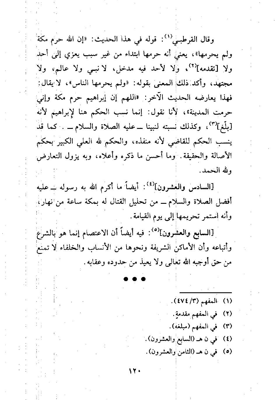 وقال القرطبي (¬1): قوله في هذا الحديث: "إن الله حرم مكة ولم يحرمها"، يعني أنه حرمها ابتداء من غير سبب يعزي إلى أحد ولا [تقدمه] (¬2)، ولا لأحد فيه مدخل، لا نبي ولا عالم، ولا مجتهد، وأكد ذلك المعنى بقوله: "ولم يحرمها الناس"، لا يقال: فهذا يعارضه الحديث الآخر: "اللهم إن إبراهيم حرم مكة وإني حرمت المدينة"، لأنا نقول: إنما نسب الحكم هنا لإِبراهيم لأنه [بلّغ] (¬3)، وكذلك نسبته لنبينا -عليه الصلاة والسلام-. كما قد ينسب الحكم للقاضي لأنه منفذه، والحكم لله العلي الكبير بحكم الأصالة والحقيقة. وما أحسن ما ذكره وأعلاه، وبه يزول التعارض ولله الحمد.
