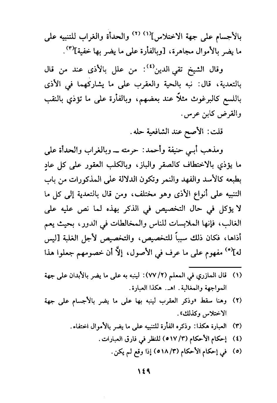 وقال الشيخ تقي الدين (¬4): من علل بالأذى عند من قال بالتعدية، قال نبه بالحية والعقرب على ما يشاركهما في الأذى باللسع كالبرغوث مثلاً عند بعضهم، وبالفأرة على ما تؤذي بالنقب والقرض كابن عرس.