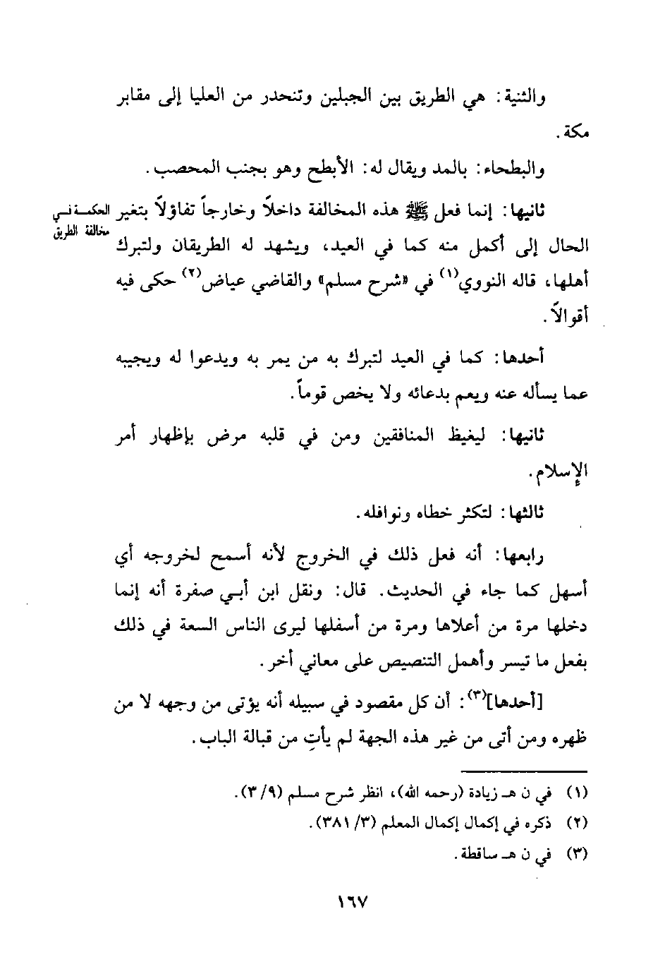 ثانيها. إنما فعل - صلى الله عليه وسلم - هذه المخالفة داخلاً وخارجاً تفاؤلاً بتغير الحال إلى أكمل منه كما في العيد، ويشهد له الطريقان ولتبرك أهلها، قاله النووي (¬1) في "شرح مسلم" والقاضي عياض (¬2) حكى فيه أقوالاً.