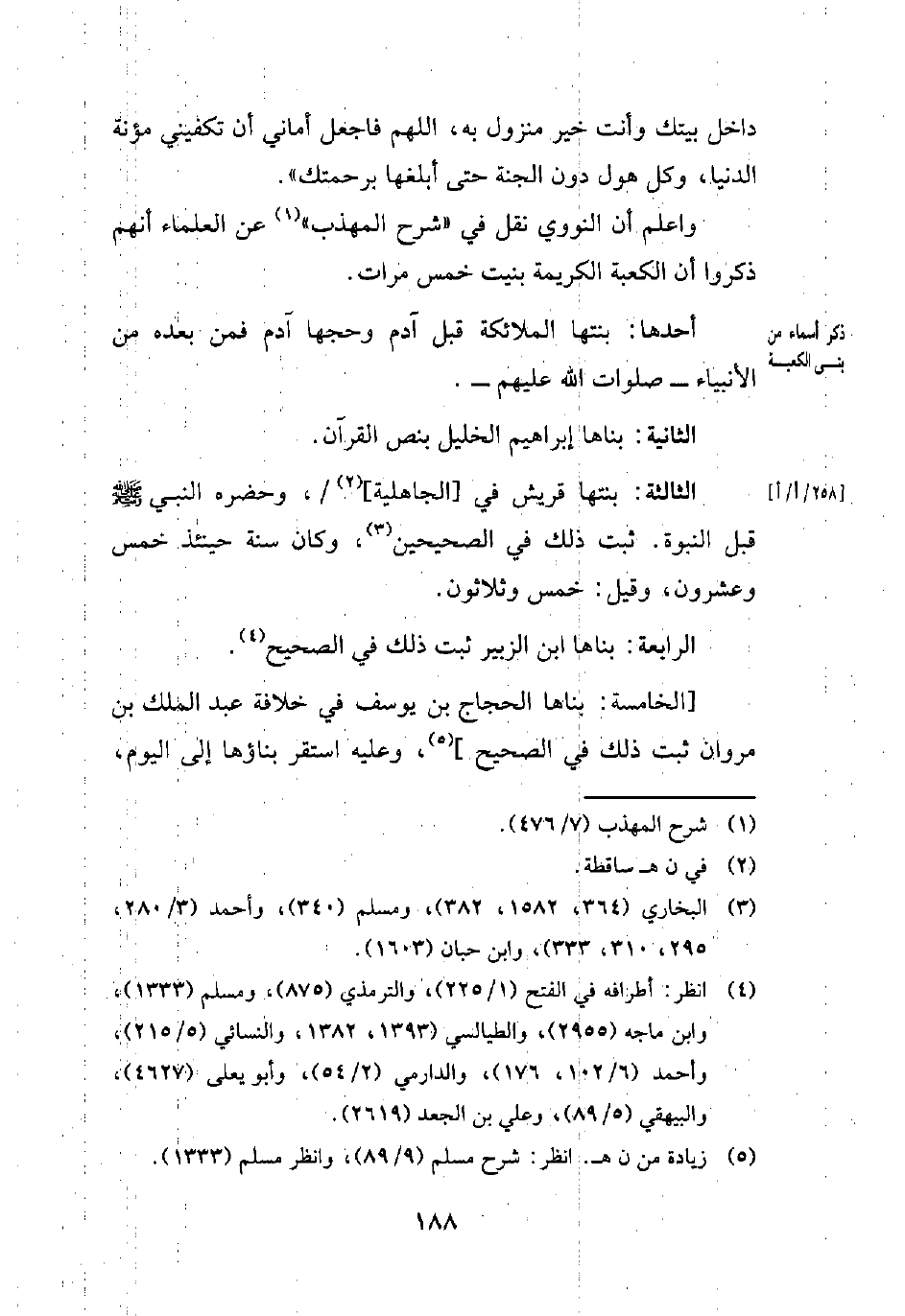 واعلم أن النووي نقل في "شرح المهذب" (¬1) عن العلماء أنهم ذكروا أن الكعبة الكريمة بنيت خمس مرات.