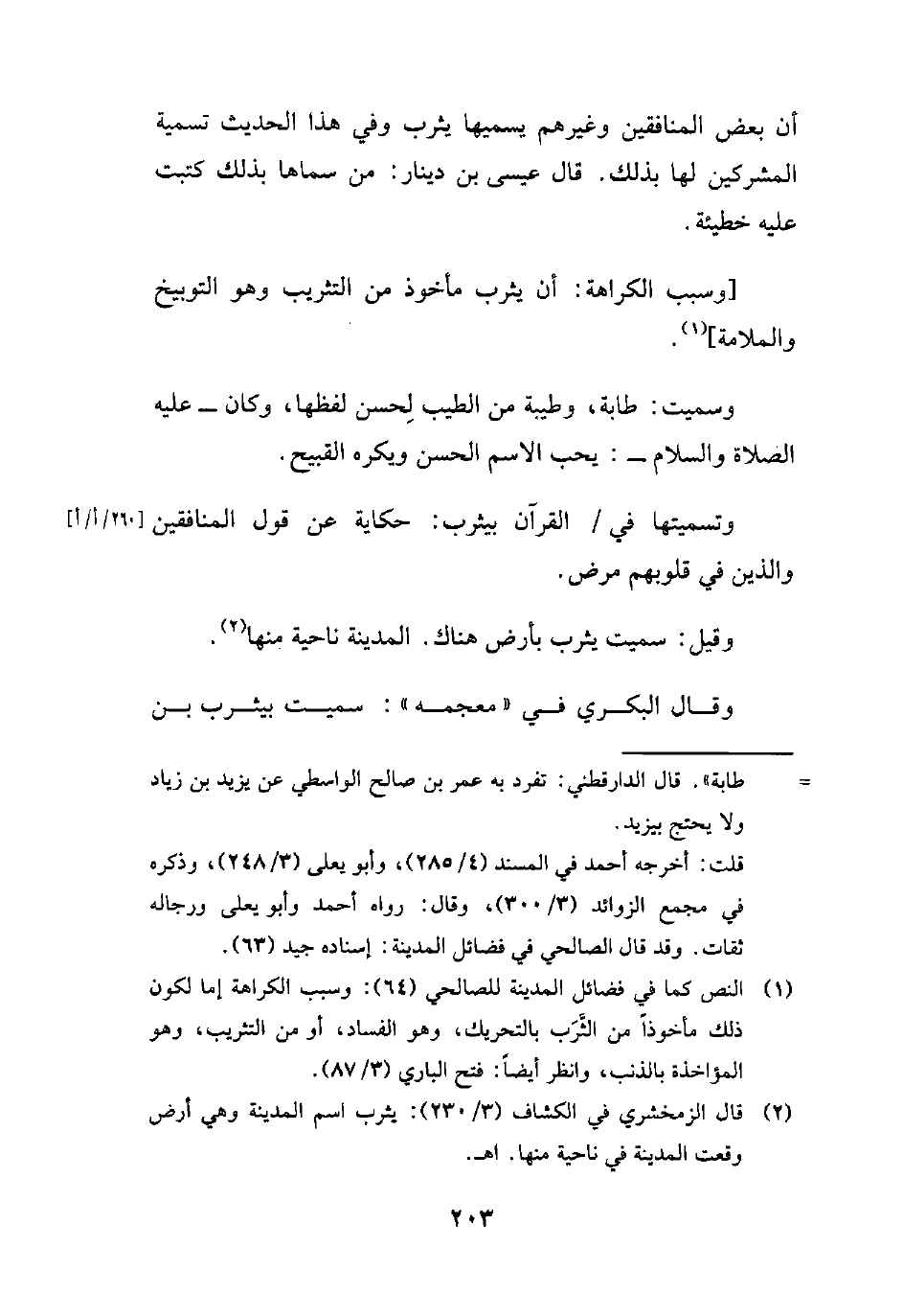 (¬1) النص كما في فضائل المدينة للصالحي (64): وسبب الكراهة إما لكون ذلك مأخوذاً من الثَّرَب بالتحريك، وهو الفساد، أو من التثريب، وهو المؤاخذة بالذنب، وانظر أيضاً: فتح الباري (3/ 87).