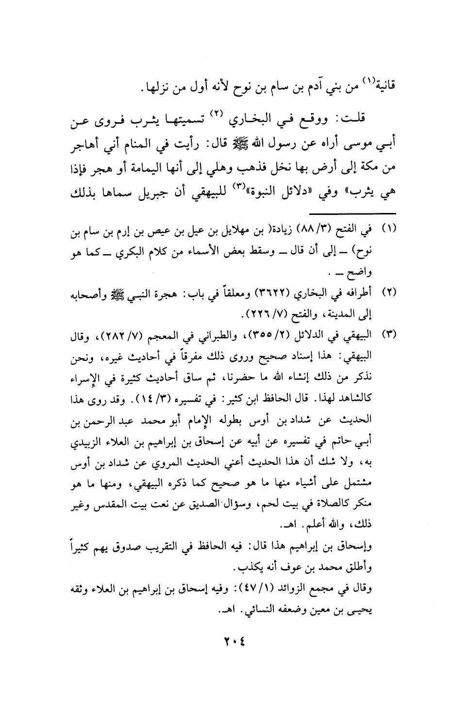 قلت: ووقع في البخاري (2) تسميتها يثرب فروى عن أبي موسى أراه عن رسول الله - صلى الله عليه وسلم - قال: رأيت في المنام أني أهاجر من مكة إلى أرض بها نخل فذهب وهلي إلى أنها اليمامة أو هجر فإذا هي يثرب" وفي "دلائل النبوة" (3) للبيهقي أن جبريل سماها بذلك