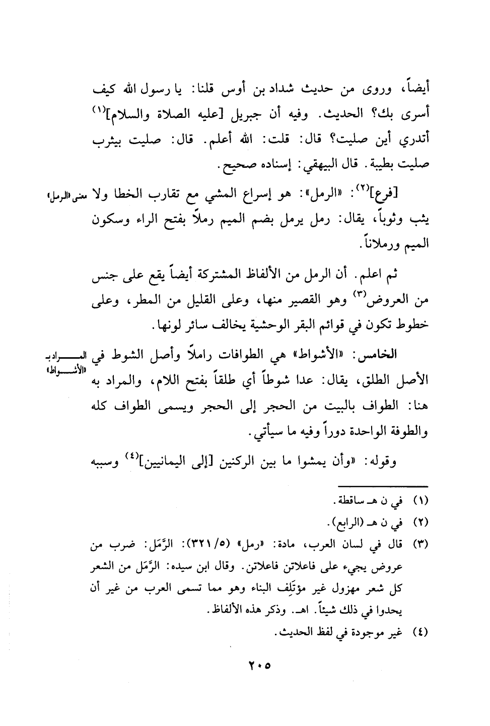 [فرع] (2): "الرمل": هو إسراع المشي مع تقارب الخطا ولا معنى "الرمل" يثب وثوبًا، يقال: رمل يرمل بضم الميم رملًا بفتح الراء وسكون الميم ورملانًا.