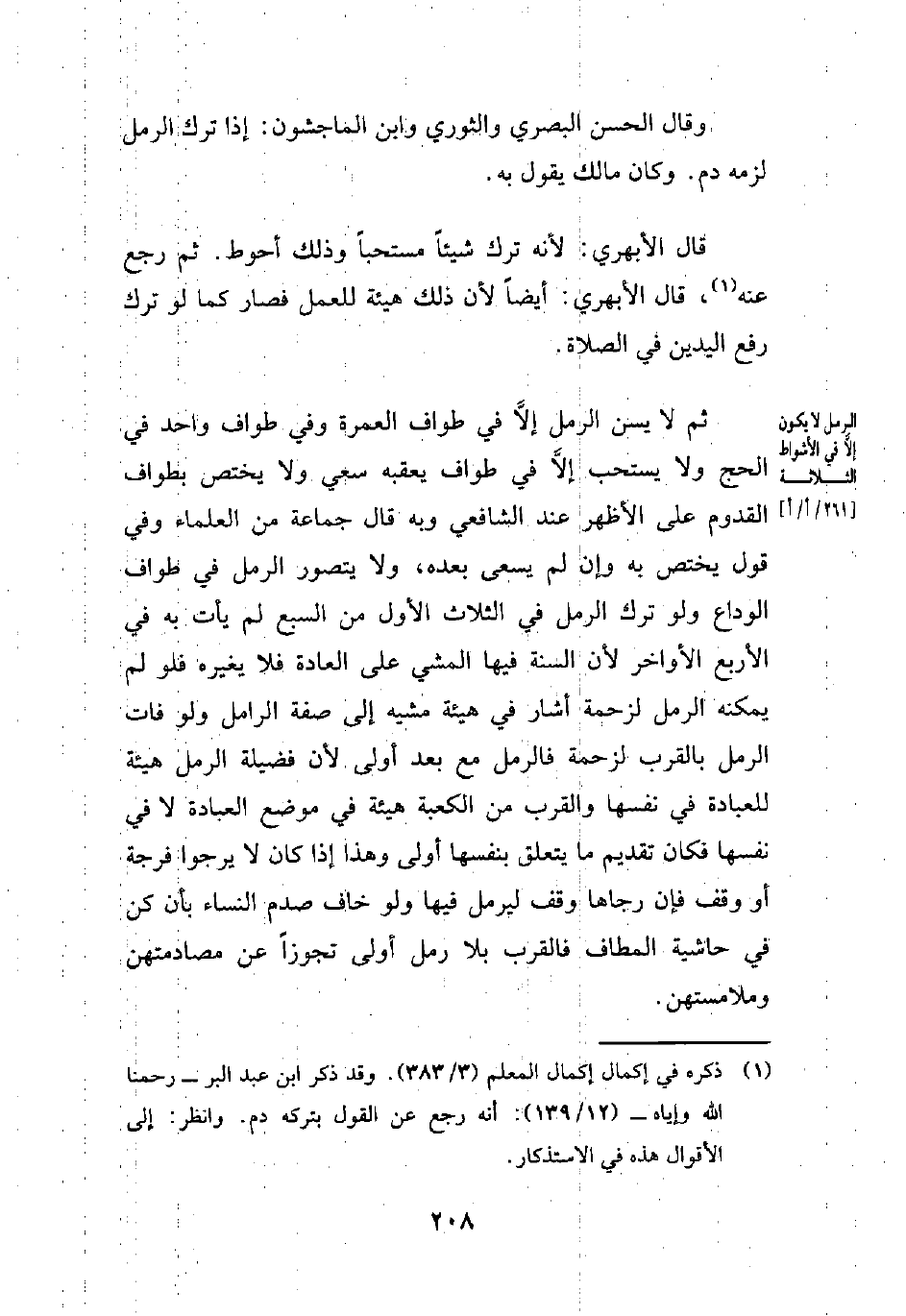 وقال الحسن البصري والثوري وابن الماجشون: إذا ترك الرمل لزمه دم. وكان مالك يقول به.
