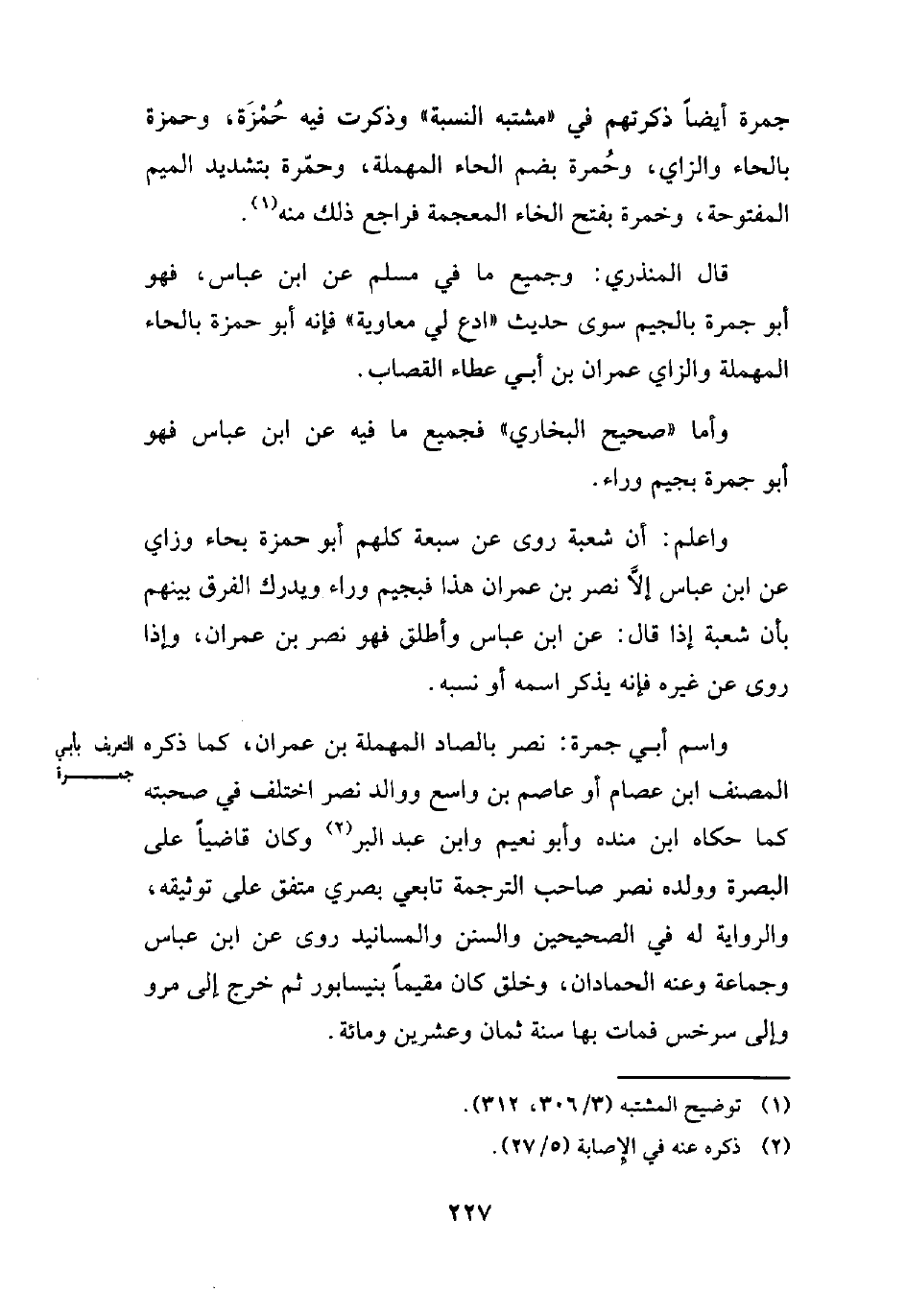 قال المنذري: وجميع ما في مسلم عن ابن عباس، فهو أبو جمرة بالجيم سوى حديث "ادع لي معاوية" فإنه أبو حمزة بالحاء المهملة والزاي عمران بن أبي عطاء القصاب.