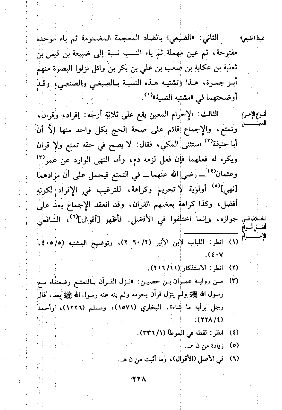 الثاني: "الضبعي" بالضاد المعجمة المضمومة ثم باء موحدة مفتوحة، ثم عين مهملة ثم ياء السبب نسبة إلى ضبيعة بن قيس بن ثعلبة بن عكابة بن صعب بن علي بن بكر بن وائل نزلوا البصرة منهم أبو جمرة، هذا وتشتبه هذه النسبة بالصبغي والصنعي، وقد أوضحتهما في "مشتبه النسبة" (¬1).