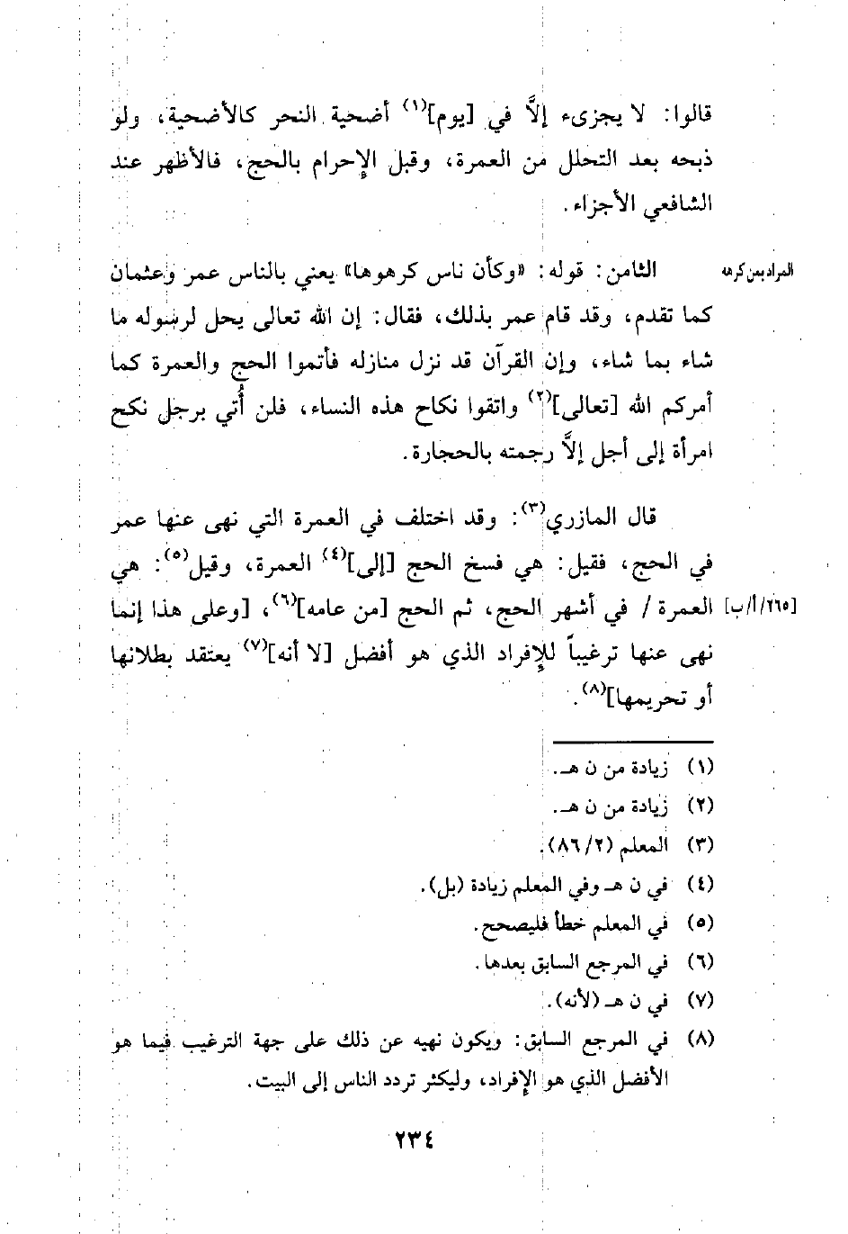 (¬8) في المرجع السابق: ويكون نهيه عن ذلك على جهة الترغيب فيما هو الأفضل الذي هو الإِفراد، وليكثر تردد الناس إلى البيت.