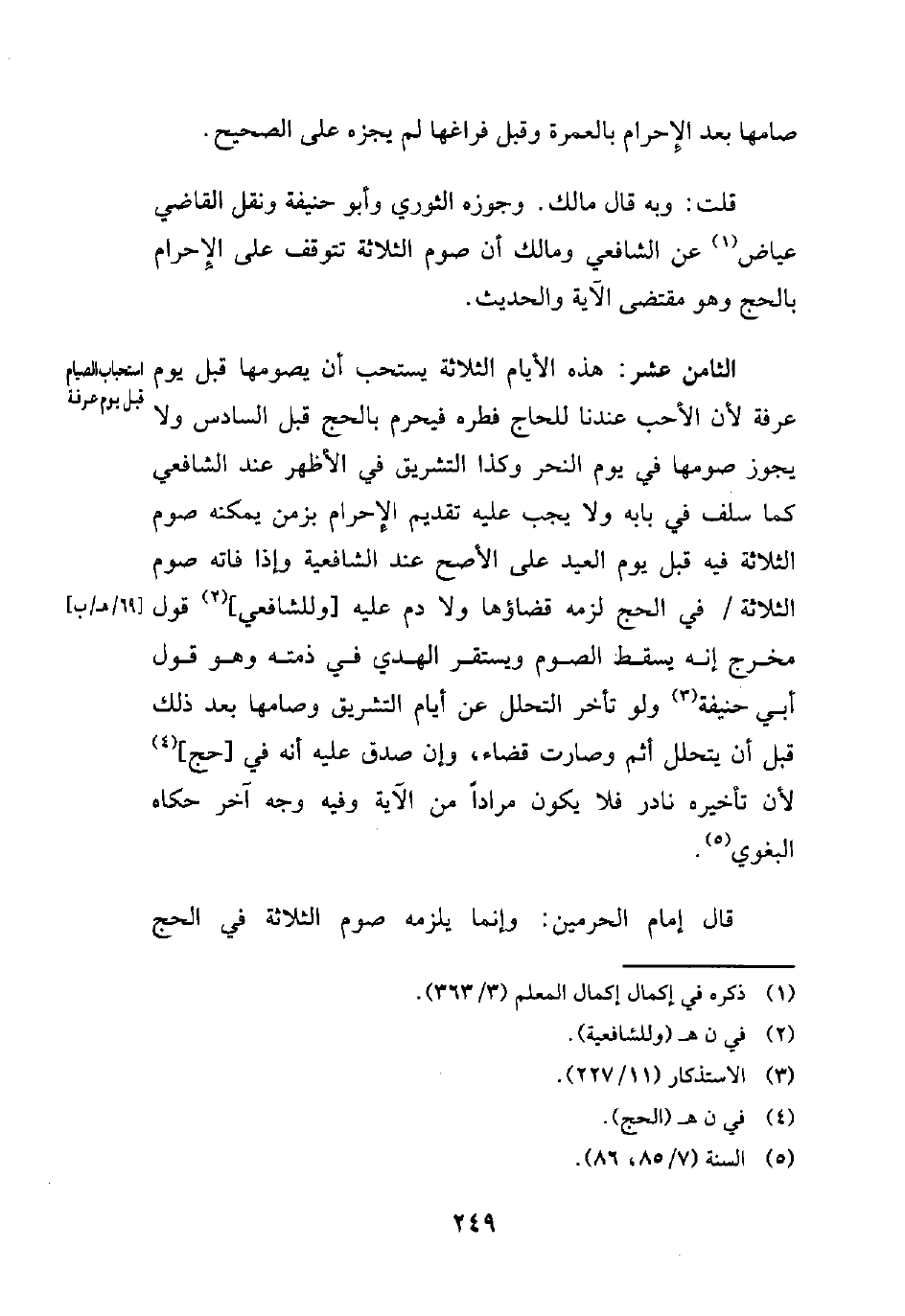 قال إمام الحرمين: وإنما يلزمه صوم الثلاثة في الحج