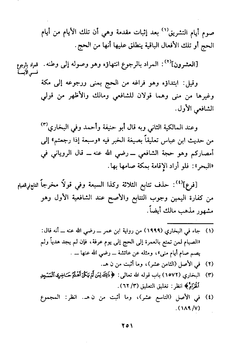 صوم أيام التشريق (¬1) بعد إثبات مقدمة وهي أن تلك الأيام من أيام الحج أو تلك الأفعال الباقية ينطلق عليها أنها من الحج.