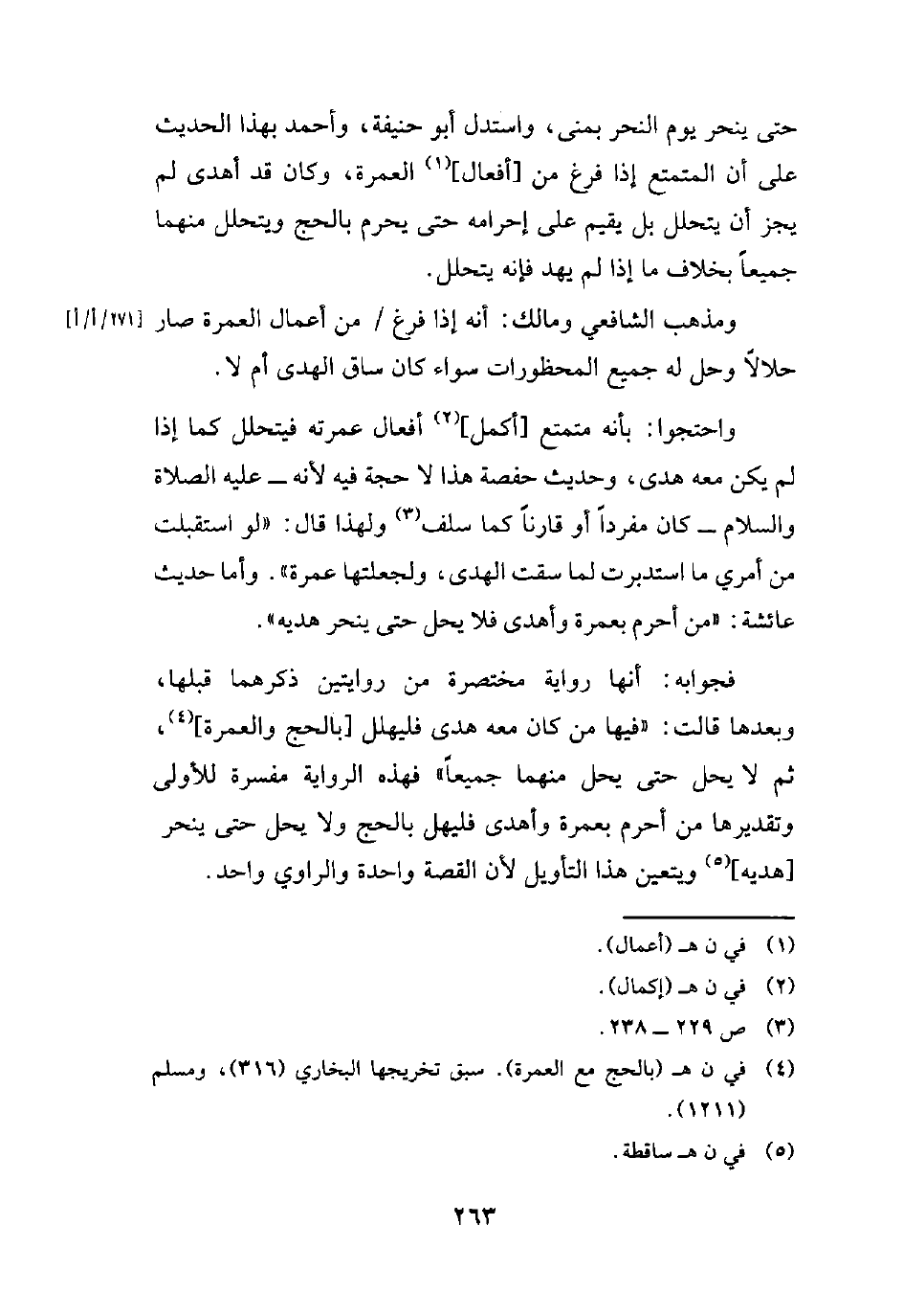 فجوابه: أنها رواية مختصرة من روايتين ذكرهما قبلها، وبعدها قالت: "فيها من كان معه هدى فليهلل [بالحج والعمرة] (¬4)، ثم لا يحل حتى يحل منهما جميعاً" فهذه الرواية مفسرة للأولى وتقديرها من أحرم بعمرة وأهدى فليهل بالحج ولا يحل حتى ينحر [هديه] (¬5) ويتعين هذا التأويل لأن القصة واحدة والراوي واحد.